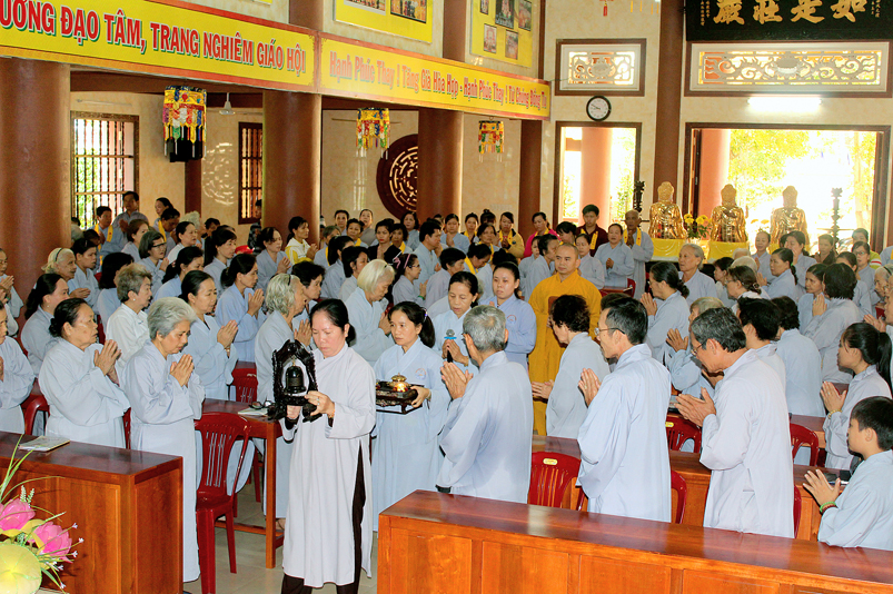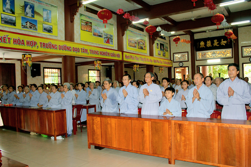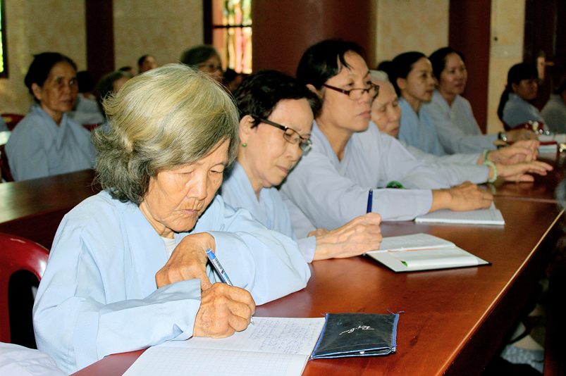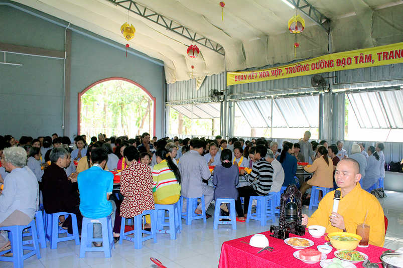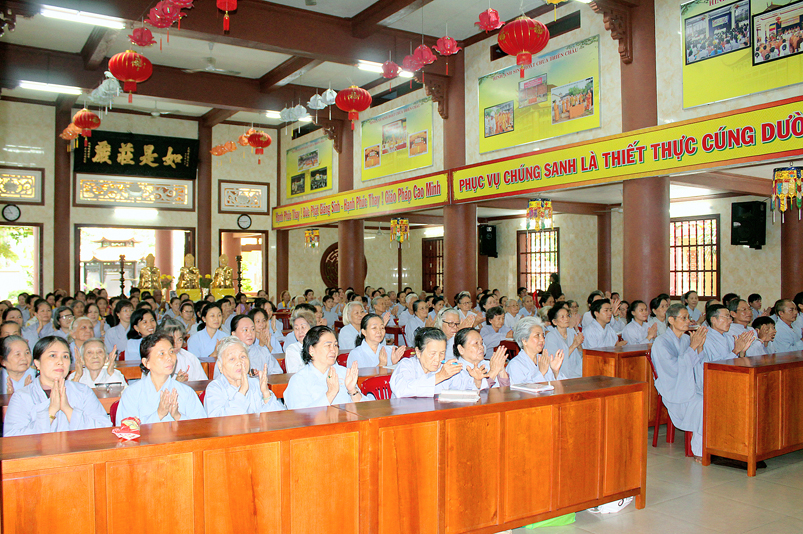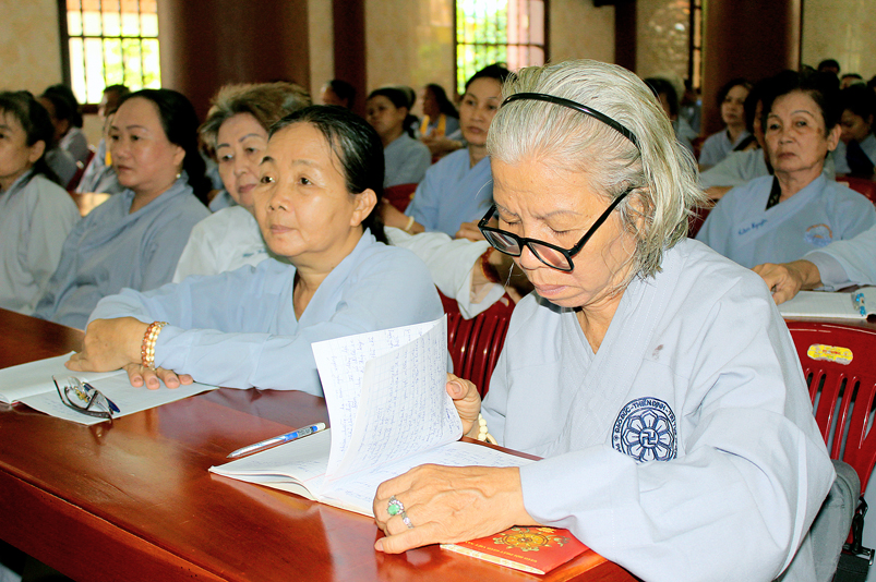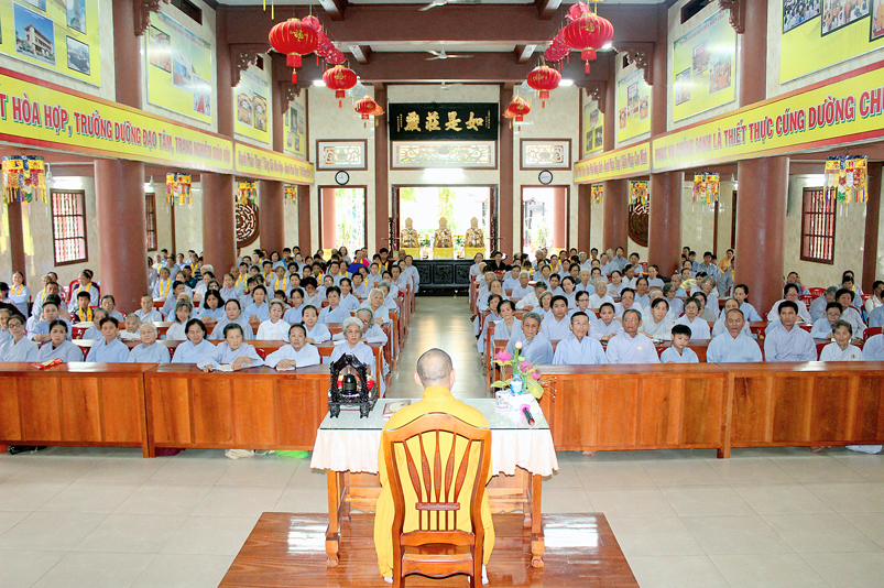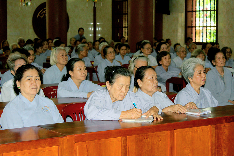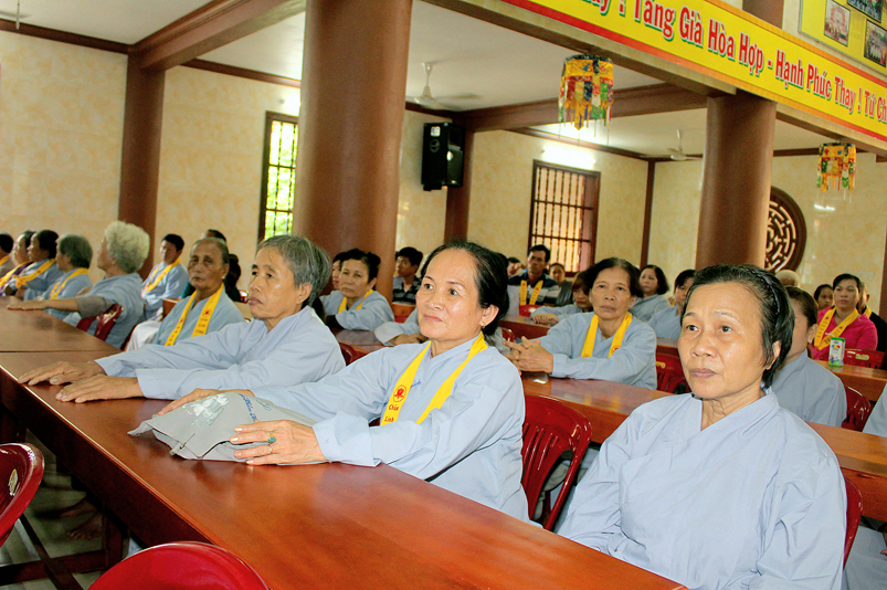 Buổi chiều, buổi tọa đàm Phật pháp rất ý nghĩa. Đại diện ban Hoằng pháp để giải đáp những nghi vấn của Phật tử, ngoài Đại đức chủ nhiệm, còn có ĐĐ. Thích Huệ Phát – UV Ban Hoằng pháp tỉnh, Trưởng ban Hoằng pháp huyện Tân Trụ và SC. Thích nữ An Diệu – Phó Thư ký Ban Hoằng pháp tỉnh. Buổi tọa đàm này tạo sự hoan hỷ của quý Phật tử .