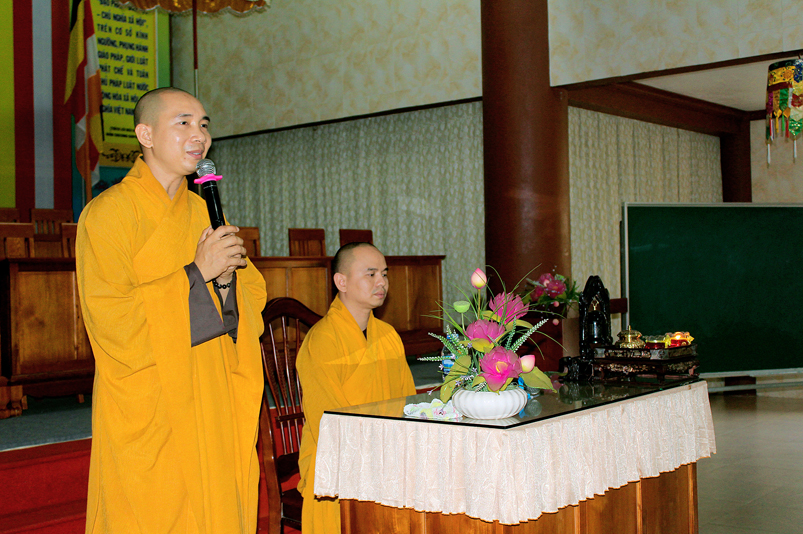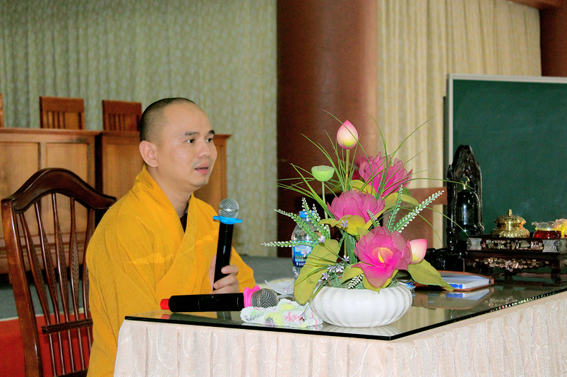 Buổi sáng, ĐĐ. Thích Lệ Ngôn – UV Ban Hoằng pháp TW, Trưởng ban Hoằng pháp GHPVN tỉnh Long An, chủ nhiệm khóa tu thuyết giảng về ý nghĩa Vesak. Đại đức đã nêu rõ tầm quan trọng của việc Liên Hợp quốc quyết định công nhận ngày Vesak và việc tổ chức đại lễ Phật đản Liên Hợp quốc. Qua sự tu tập là thể hiện ý nghĩa cao đẹp của việc kính mừng Phật đản.