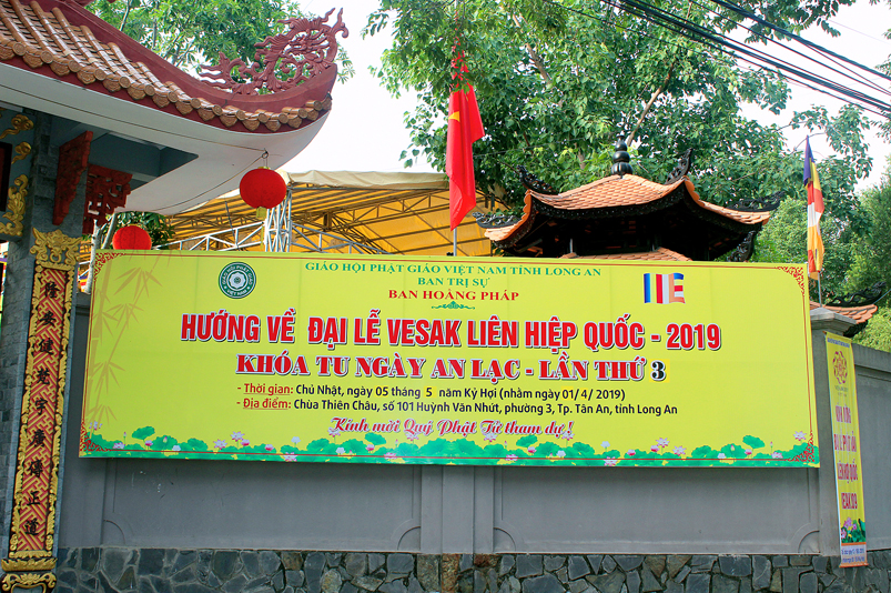 Chủ Nhật, mùng 1 tháng 4 Kỷ Hợi (5/5/2019), tại chùa Thiên Châu (phường 3, Tp Tân An), khóa tu ngày An Lạc lần 3 được Ban Hoằng pháp GHPGVN tỉnh Long An kết hợp với chùa Thiên Châu tổ chức. HT. Thích Minh Thiện – UV HĐTS, Trưởng ban Trị sự GHPGVN tỉnh Long An đã chứng minh và chỉ đạo chương trình khóa tu. Có gần 300 Phật tử tham dự khóa tu.