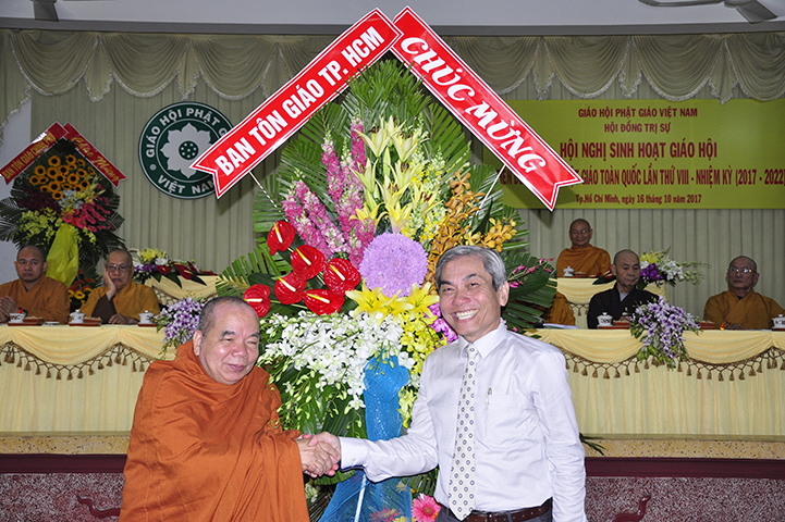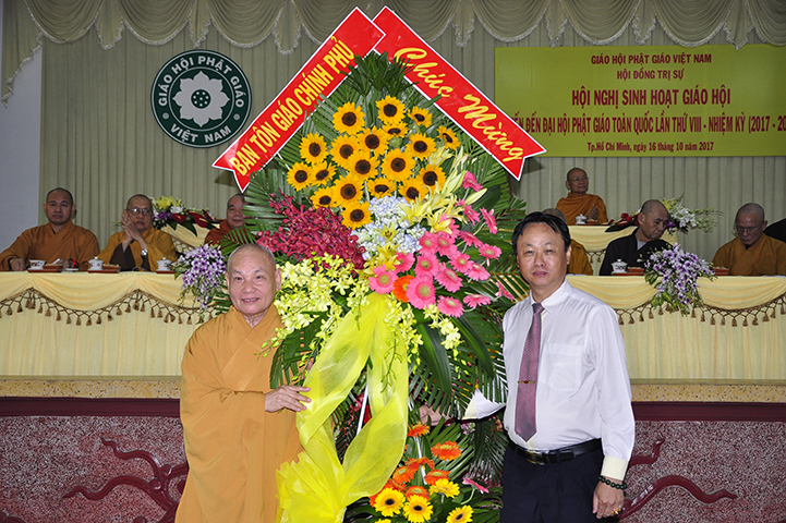 Đại diện các bộ, ban, ngành T.Ư, TP.HCM có ông Trà Quang Thanh, Phó Vụ Trưởng Vụ Công tác tôn giáo phía Nam – Ban Tôn giáo Chính phủ; bà Nguyễn Lê Hà, đại diện Cục An ninh xã hội – Bộ Công an; ông Lê Hoàng Vân, Phó Trưởng ban Tôn giáo TP.HCM.