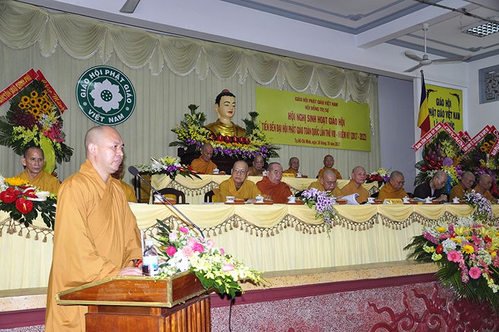 Tại hội nghị, TT.Thích Đức Thiện, Tổng Thư ký HĐTS báo cáo hoạt động Phật sự của Giáo hội trong nhiệm kỳ 2012 – 2017. Theo đó, TƯGH đã thực hiện nhiều chương trình hoạt động Phật sự nổi bật trong nhiệm kỳ VII: