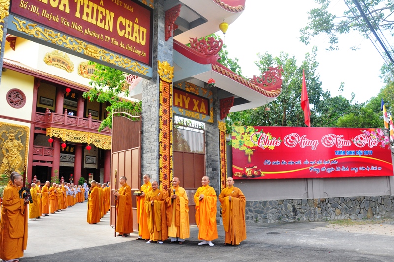 Lúc 9h giờ sáng mồng 3 Tết Đinh Dậu, HT Thích Thiện Nhơn – Chủ tịch HĐTS GHPGVN quang lâm thăm Trụ sở Văn phòng BTS Phật Giáo Long An Nhân dịp Đầu Xuân Đinh Dậu, tại chùa Thiên Châu, Tp Tân An.