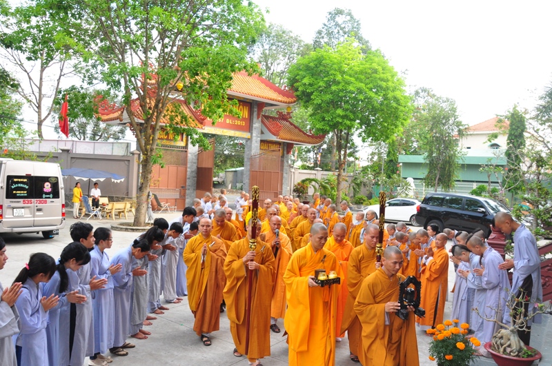 Đại diện BTS GHPVN tỉnh Long An, BTS GHPVN Tp Tân An, BGH trường TCPHLA, gồm có: HT Thích Minh Thiện – UV HĐTS, Phó ban Hoằng pháp TW, Trưởng ban BTS GHPVN tỉnh Long An, Hiệu trưởng trường TCPHLA; ĐĐ Thích Lệ Trí – UV HĐTS, Chánh thư ký BTS GHPGVN tỉnh Long An; ĐĐ Thích Lệ Ngôn – UV TT BTS GHPGVN tỉnh Long An; ĐĐ Thích Thiện Danh – Phó thư ký kiêm chánh văn phòng BTS GHPVN tỉnh Long An; ĐĐ Thích An Nhựt – Trưởng ban HDPT GHPGVN tỉnh Long An và Tăng Ni Phật tử đã cung đón Hoà thượng Chủ tịch HĐTS GHPGVN quang lâm.
