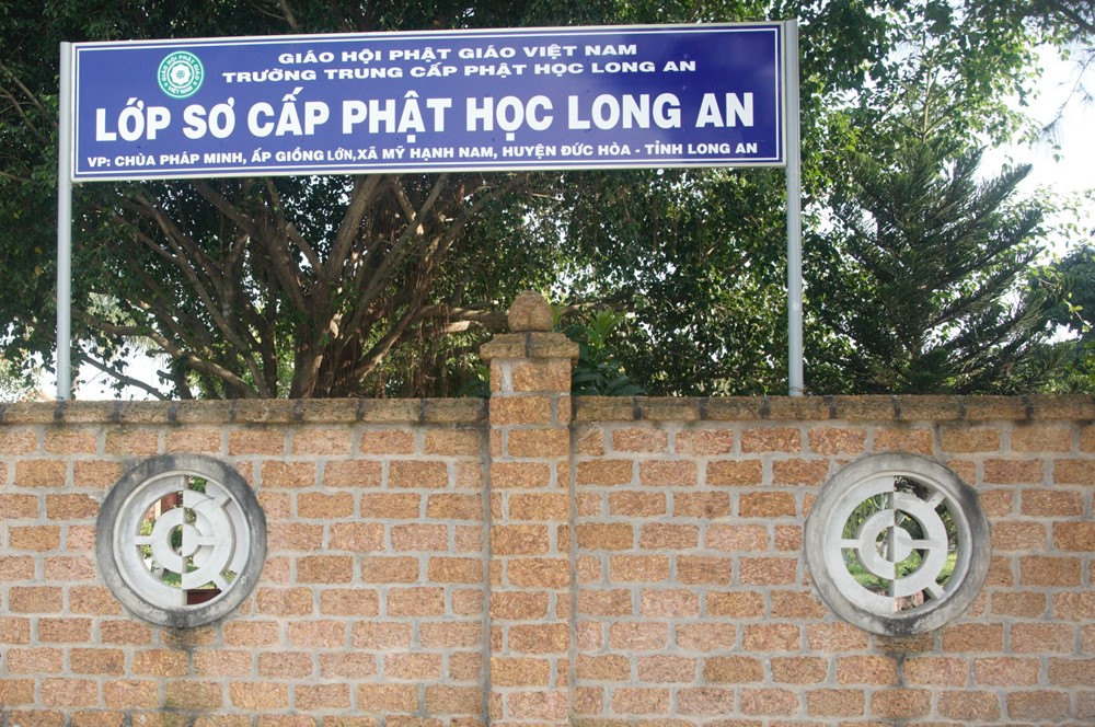 Trường Cơ Bản Phật học Long An (nay là Trung cấp Phật học Long An) được hình thành từ năm 1992 tại hai cơ sở Chùa Thiên Khánh và Chùa Thiên Phước. Đây là ngôi trường Cơ bản Phật học thứ 17 trên phạm vi cả nước và là một trong ba ngôi trường nội trú thời bấy giờ. Hòa thượng nhắc lại để thành lập trường là sự nỗ lực chung của tập thể Ban Trị sự tỉnh và Ban Giám Hiệu trường. Trường dựng lên bằng mái lá, vách tre, thiếu thốn mọi thứ từ nước sinh hoạt, gạo, thực phẩm…Tuy nhiên, nhờ sự gia hộ của Tam Bảo, sự hy sinh phụng sự “Đạo pháp và Dân tộc” của Chư Tôn đức đến nay Trường đã đào tạo được năm khóa; nhiều Tăng Ni ra trường đã tiếp tục theo học Cao Đẳng, Học viện, Cử nhân, Thạc sĩ và Tiến sĩ Phật học. Nhiều Tăng Ni đã và đang phục vụ cho Giáo hội các cấp. Trường hiện đang đào tạo năm thứ hai khóa VI.