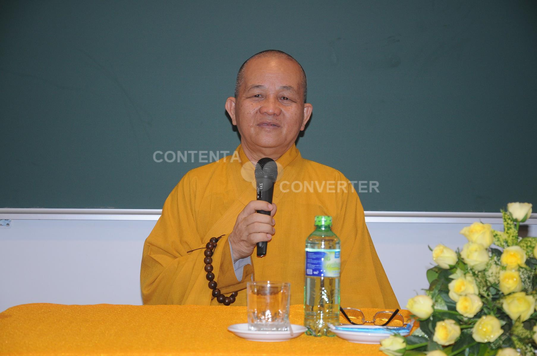 Hòa thượng nói lên ý nghĩa của việc xuất gia, công đức của người xuất gia và chia sẻ về kinh nghiệm tu học để đối trị với những nghiệp bất thiện, những cám dỗ của cuộc đời như tài, sắc, danh, thực và thùy. Hòa thượng cũng khuyên Tăng Ni sinh cố gắng nỗ lực tu học, chuyên trì giới luật, và phải làm sao để hộ pháp thương yêu và ủng hộ.