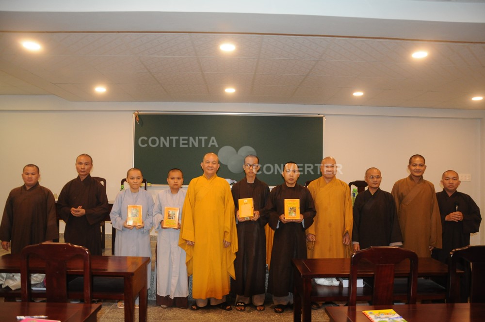 Cũng nhân dịp này, ĐĐ Thích Thiện Trực: Phó ban Trị sự GHPGVN liên huyện Đức Hòa-Đức Huệ hỷ cúng 100 bộ Phật học phổ thông cho Tăng Ni sinh.