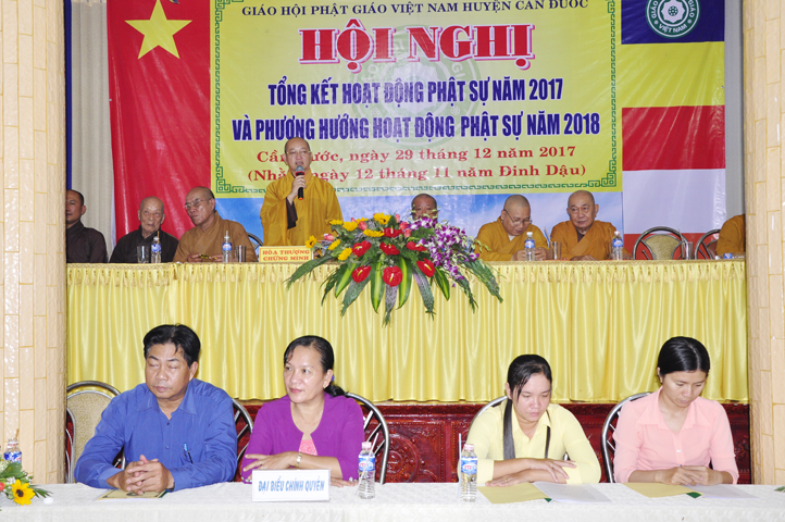 Hội nghị đã thông qua báo cáo tổng kết Phật sự năm 2017, Phương hướng sinh hoạt Phật sự năm 2018 của Ban Thường trực Ban Trị sự GHPGVN huyện Cần Đước. Hội nghị cũng đã lắng nghe những tâm tư nguyện vọng của Chư Tôn đức Tăng Ni huyện nhà, cùng lời đạo từ quý giá, vô cùng hữu ích cho chương trình hoạt động Phật sự năm 2018, của Chư Tôn đức Thường trực Ban Trị sự GHPGVN tỉnh Long An.