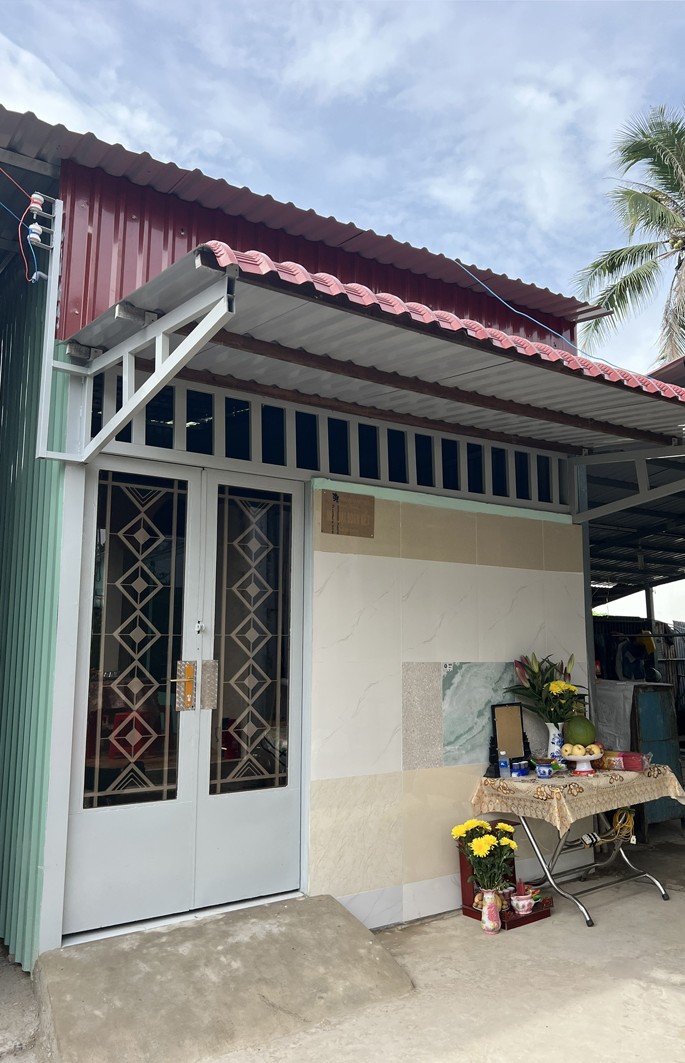 Căn nhà được xây dựng với diện tích 60 m2, mái lợp tôn, vách tường, nền lót gạch men. Tổng kinh phí xây dựng trên 60 triệu đồng, trong đó chư Tăng Chùa Thạnh Đức và quý Phật tử mạnh thường quân trợ duyên 43.750.000 đồng, phần còn lại do gia đình hỗ trợ.