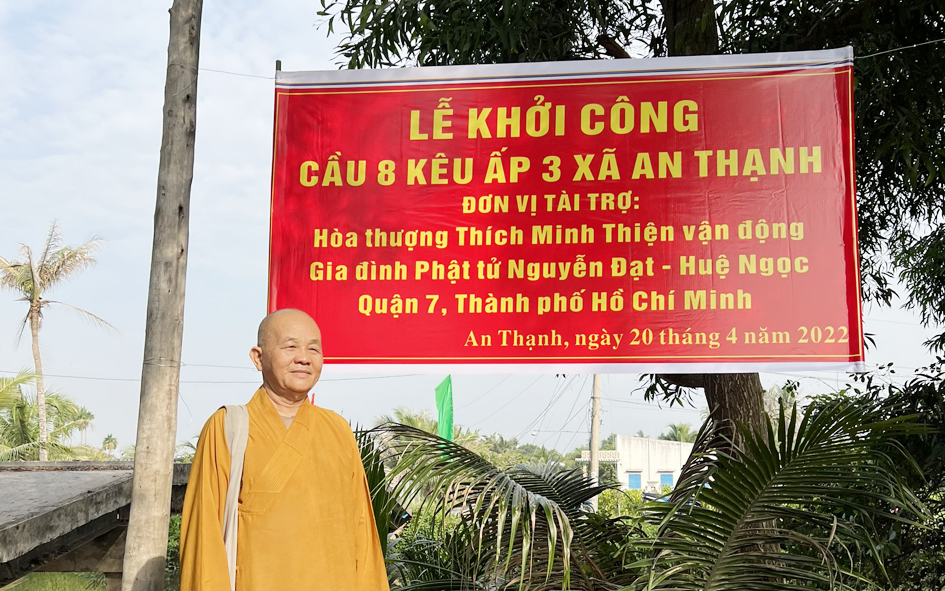 Cây cầu với chiều dài 25m, ngang 3.5m với tổng kinh phí là 280 triệu, do HT. Thích Minh Thiện vận động Gia Đình Phật Tử Nguyên Đạt – Huệ Ngọc quận 7 -Tp. Hồ Chí Minh tài trợ. Đây là Công Trình Chào Mừng Đại Hội Đại Niểu Phật Giáo Tỉnh Long An Nhiệm Kì( 2022-2027). Phát biểu tại buổi lễ HT. Thích Minh Thiện tri ân nhà tài trợ đã đồng hành hỗ trợ địa phương và tri ân Chính Quyền xã An Thạnh đã tạo duyên để Phật giáo có chương trình Phật sự nơi này. Hòa thượng chúc sức khỏe quý lãnh đạo chính quyền địa phương, các Phật tử mạnh thường quân và chúc công trình sớm thành tựu và đưa vào sử dụng.