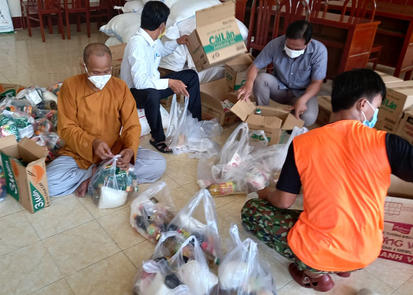 Trước tình hình dịch Covid-19 diễn biến phức tạp, chư tôn đức Tăng Ni, Phật tử huyện Châu Thành đã tích cực chung tay cùng Chính quyền địa phương chăm lo hỗ trợ người dân trong các khu cách ly, phong tỏa.