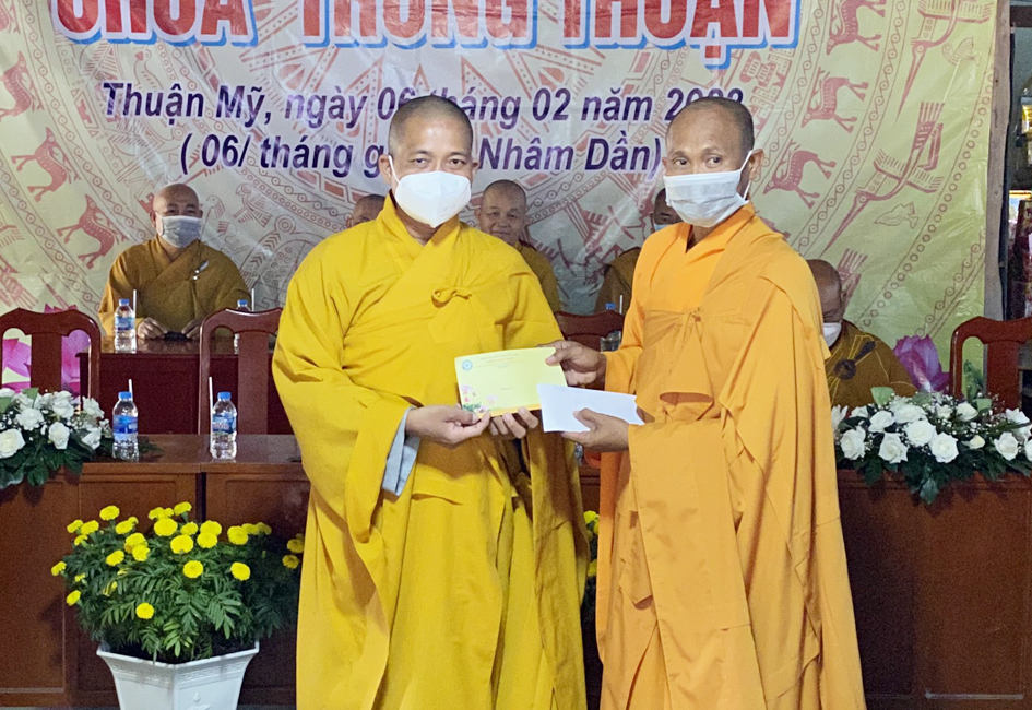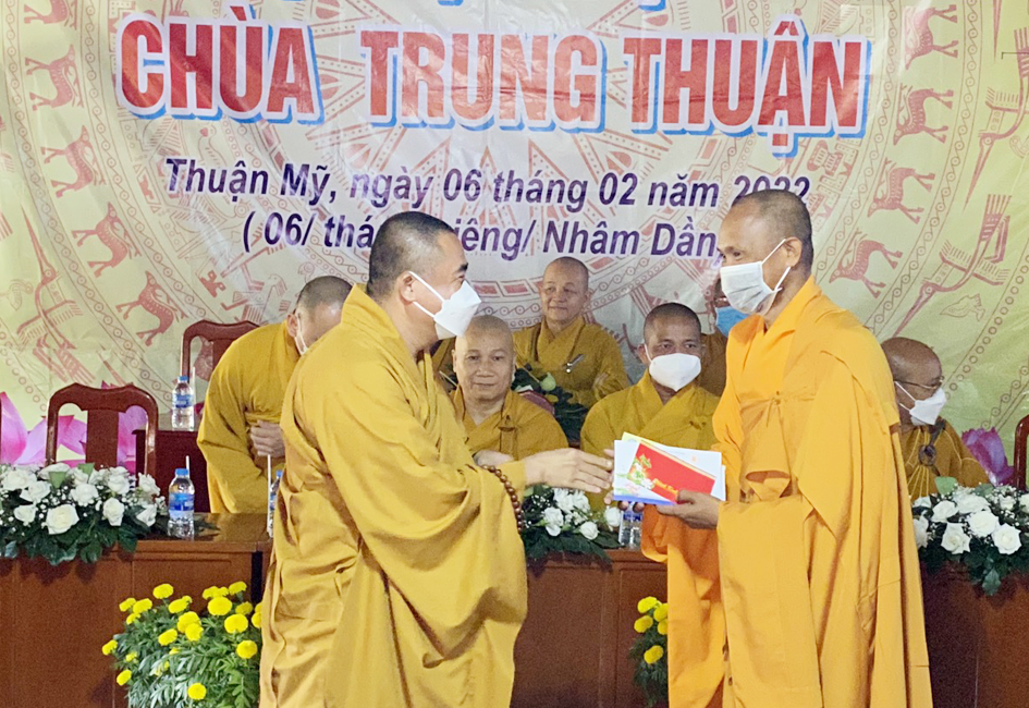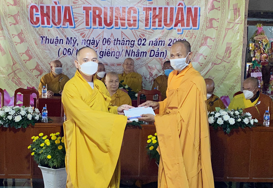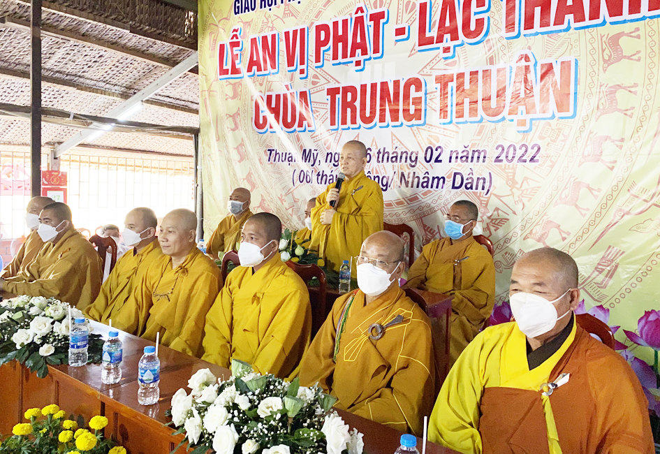 Đạo từ tại buổi lễ HT. Thích Minh Thiện đã từ bi ban lời đạo từ. Bằng lòng từ mẫn của vị ân sư, Ngài hoan hỷ trước quá trình trùng tu chùa Trung Thuận đã hoàn thành và sự gia tâm cầu nguyện của quý Chư tôn đức Tăng, Ni và sự phát tâm ủng hộ của quý mạnh thường quân cùng quý Phật tự đạo tâm xa gần đã tạo điều kiện thuận lợi cho Đại đức trụ trì hoàn thành tâm nguyện trùng tu ngôi tam bảo trở nên khang trang để cho tứ chúng có nơi an tâm tu học và hoằng dương giáo pháp. Ngài đã chỉ dạy về Tinh thần nhập thế của Phật giáo thời Trần. Trải qua hơn 2000 ngàn năm lịch  Phật giáo đồng hành cùng dân tộc,  tinh thần hộ quốc an dân, những giá trị cốt lỏi của tinh thần ấy vẫn còn nguyên giá trị cho đến ngày nay. Và Ngài cũng khuyến tấn những ngôi già lam, tự viện nên áp dụng thực hành theo tinh thần ấy thông qua ba điều cốt lõi. Thứ nhất hướng dẫn đời sống tâm linh một cách tích cực theo tinh thần và giáo lý của Phật giáo, vận dụng tinh thần vô ngã, vị tha, từ bi và trí tuệ để phát triển phẩm chất đạo đức phù hợp với người học Phật. Thứ hai mỗi ngôi già lam tự viện là nơi góp phần truyền bá và phát triển truyền thống văn hoá tốt đẹp của dân tộc, đào tạo hiền tài để xây dựng đất nước. Thứ ba quan tâm chăm sóc sức khoẻ cộng đồng của xã hội. Ngài còn nhắc lại hạnh nguyện đồng hành cùng dân tộc qua lời dạy của Cố HT. Thích trí Thủ- nguyên đệ nhất chủ tịch HĐTSTW GHPGVN: Những gì tôi làm cho đạo Pháp là cũng làm cho dân tộc, những gì tôi làm cho dân tộc cũng làm cho đạo Pháp”. Ngài mong muốn Đại Đức trụ trì nên vận dụng tinh thần Phật giáo thời Trần bằng phương pháp linh hoạt để hoằng dương Phật pháp và gìn giữ bản sắc truyền thống tốt đẹp của dân tộc.