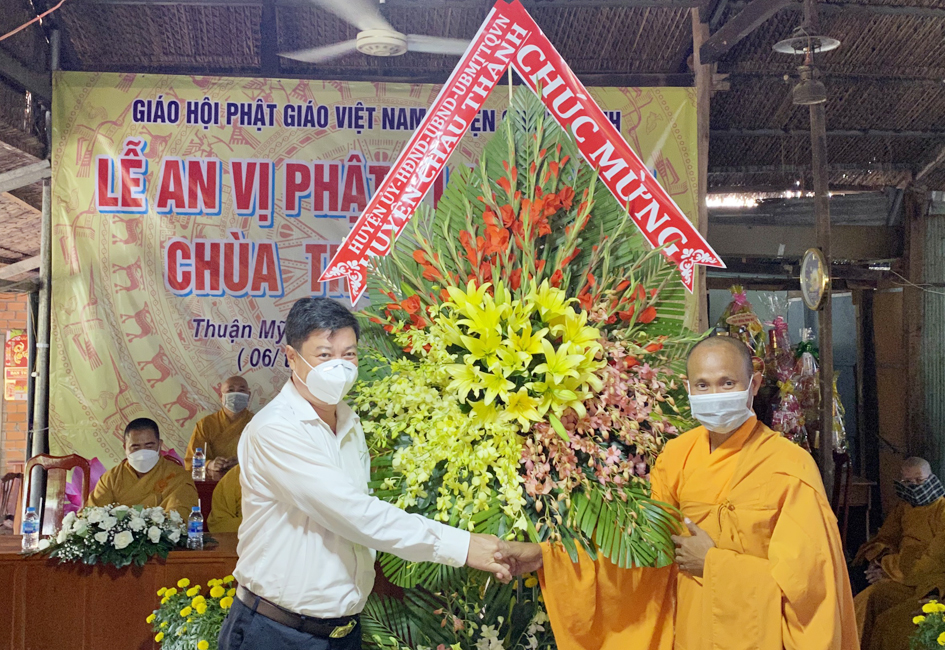 Ban tổ chức trân trọng đón tiếp: Ông Trần Văn Cần- Nguyên Phó Bí thư Tỉnh Uỷ, Chủ tịch UBND tỉnh Long An; Bà Phạm Ngọc Tiệp- Phó Chủ tịch MTTQVN tỉnh Long An; Ông Trương Văn Biết- Nguyên Bí thư Huyện Uỷ huyện Châu Thành; Ông Nguyễn Dương Phong Linh -Phó Bí thư thường trực Huyện Uỷ, Chủ tịch HĐND huyện Châu Thành; Ông Nguyễn Văn Khải-Phó Bí thư Huyện Uỷ, Chủ tịch UBND huyện Châu Thành, cùng quý vị khách quý lãnh đạo các ban nghành, đoàn thể của huyện Châu Thành và xã Thuận mỹ và hoan hỷ đón tiếp với sự tham dự của quý mạnh thường quân và đồng bào Phật tử các giới trở về tham dự.