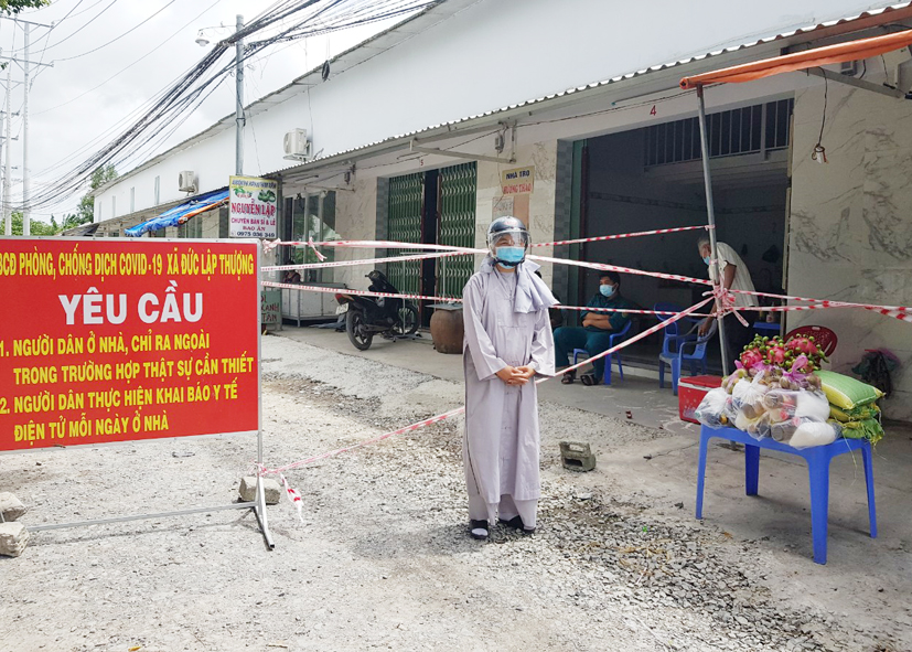 Thể hiện tinh thần Từ Bi của đạo Phật, thực hiện theo sự chỉ đạo của Phật giáo tỉnh nhà, tiếp sức cùng Chính quyền chống dịch. Hôm nay, ngày 03 tháng 8 năm 2021 (nhằm ngày 25/06/Tân Sửu), tiếp tục hưởng ứng lời kêu gọi của các cấp lãnh đạo chính quyền, Ban Trị sự GHPGVN huyện Đức Hòa đã đến thăm, tặng quà cho các khu vực cách ly, phong tỏa tại xã Đức Lập Thượng, huyện Đức Hòa, tỉnh Long An.