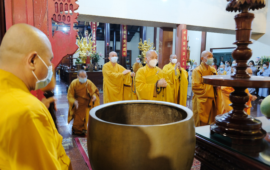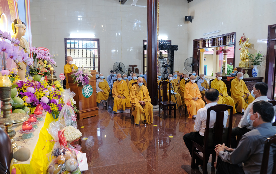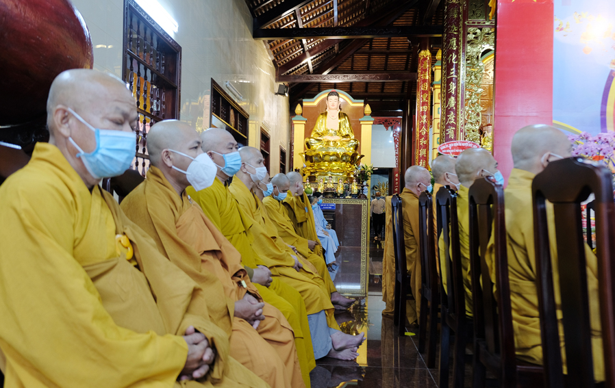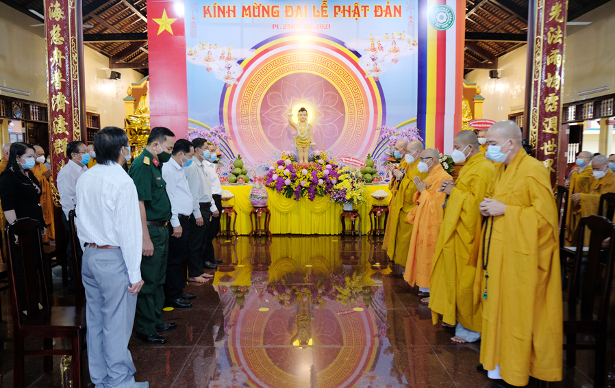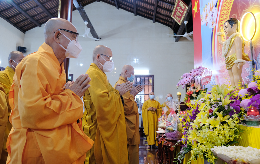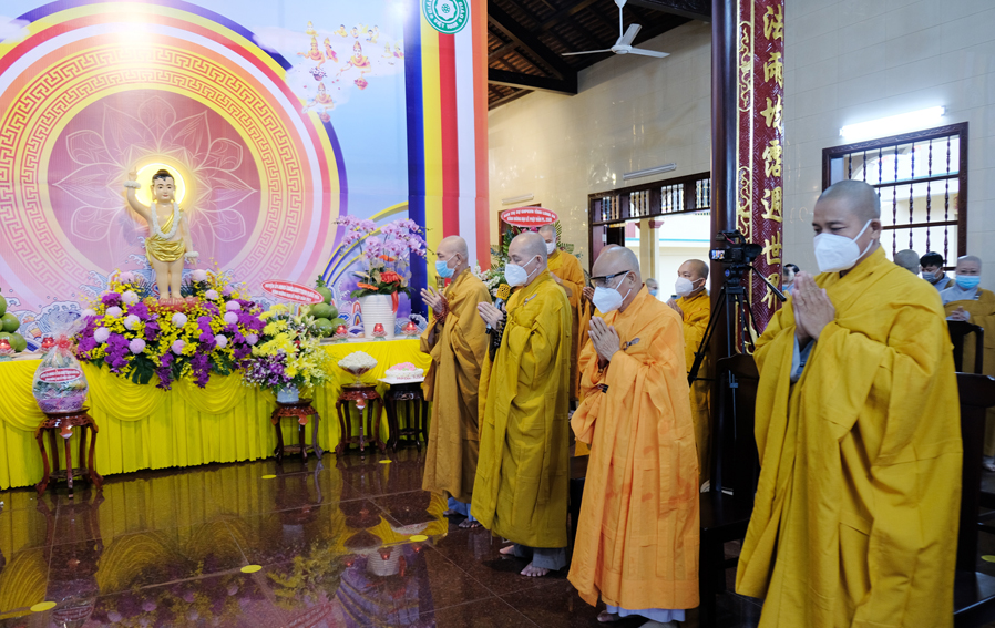 Đại lễ Phật Đản năm nay được cử hành trong bối cảnh đất nước đang dốc toàn lực phòng chóng đại dịch Covid 19, thực hiện tốt khuyến cáo 5K của Bộ y tế. Vì thế, Đại lễ được diễn ra trang nghiêm và trọng thể với sự chứng minh tham dự của Chư tôn đức thành viên thường trực Ban Trị Sự trong phạm vi nội bộ.