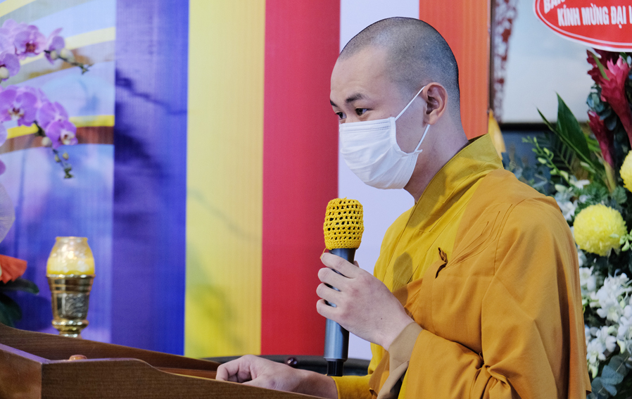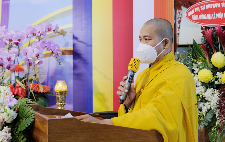 Đại đức Thích Lệ Duyên – Chánh thư kí BTS GHPGVN tỉnh Long An, Trưởng BTS GHPGVN huyện Đức Hòa đọc diễn văn chúc mừng Phật Đản năm 2021 của Hòa thượng Chủ tịch Hội đồng Trị sự Trung ương GHPGVN nhân mùa Phật Đản.