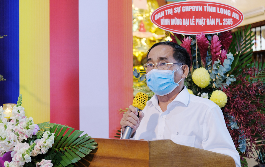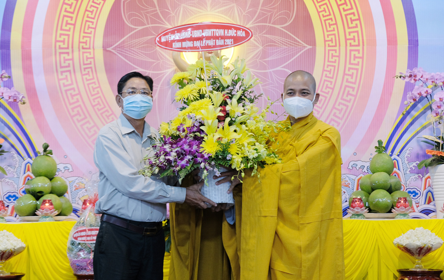 Tại buổi lễ, thay mặt cho Lãnh đạo chính quyền tỉnh Long An và huyện Đức Hòa ông Nguyễn Văn Đạo – Chủ tịch MTTQVN huyện Đức Hòa, đã gởi lời chúc mừng Đại lễ Phật Đản năm 2021.