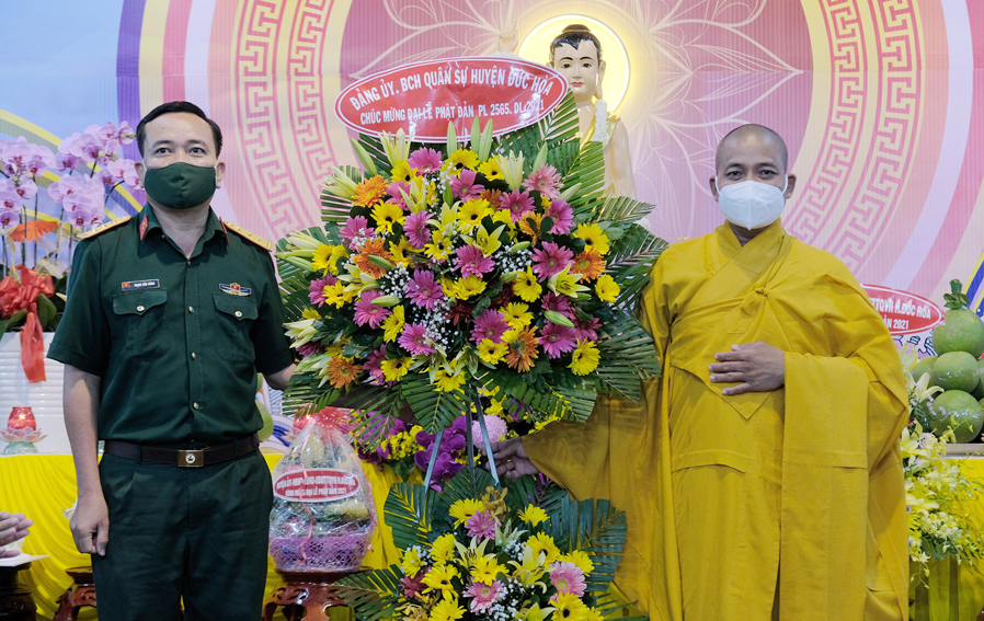 Ban tổ chức vinh dự đón nhận lẳng hoa chúc mừng Đại lễ Phật đản PL.2565-DL.2021 của Thường trực BTS GHPGVN tỉnh Long An; Huyện Ủy-HĐND-UBND-UBMTTQVN huyện Đức Hòa; Đảng ủy BCH QS huyện Đức Hòa; Ban Chỉ huy Công an huyện Đức Hòa.