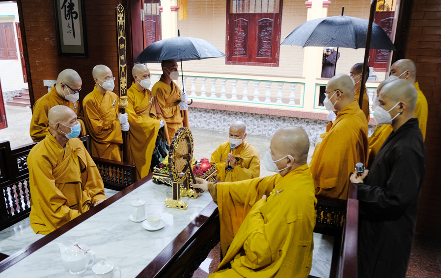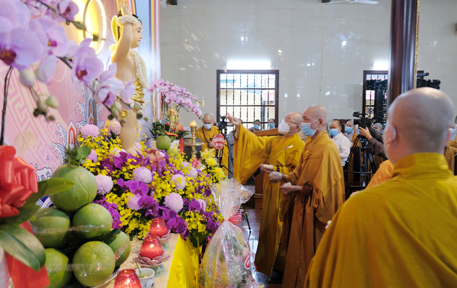 Đại lễ kết thúc viên mãn bằng nghi lễ truyền thống, Chư tôn đức giáo phẩm niêm hương và thực hiện nghi thức tắm Phật trong sự hoan hỷ đồng cầu nguyện cho thế giới hòa bình, đại dịch Covd 19 sớm qua đi, mọi người được bình an và sức khỏe.