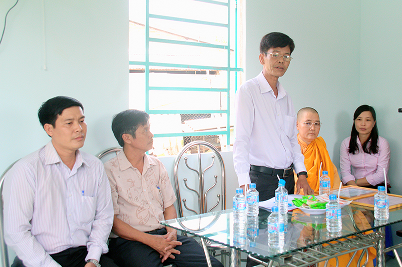 Tại buổi lễ, bà Nguyễn Thị Tú Loan đại diện lãnh đạo chính quyền xã thông qua báo cáo công tác xây dựng căn nhà và thông qua quyết định trao tặng nhà tình thương cho hộ bà Nguyễn Thị Lan thuộc diên hộ nghèo của xã.
