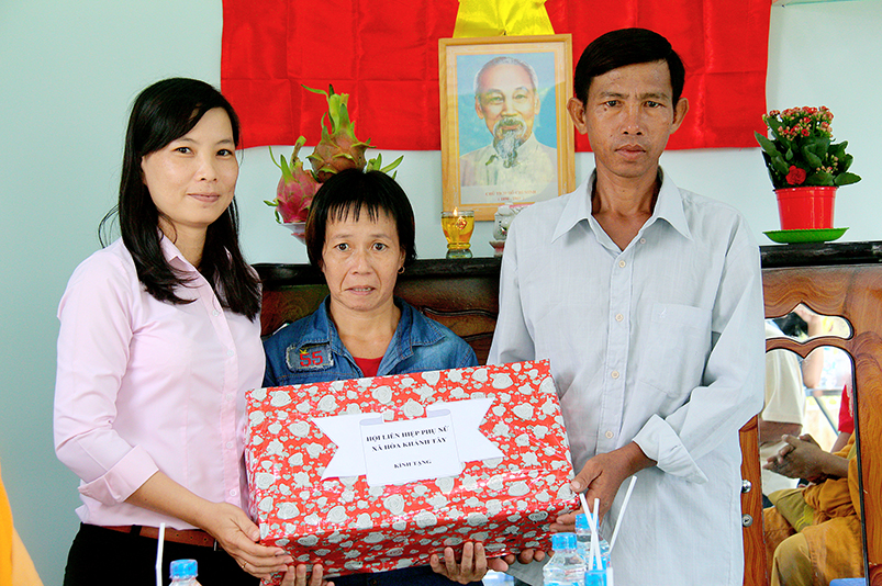 Sáng ngày 30/ 09/ 2019 (nhằm ngày mùng 02/ 09/ Kỷ Hợi), Sư cô Thích nữ Hương Liên, Đạo tràng Phật tử tại địa phương kết hợp với Hội Liên hiệp Phụ nữ xã Hòa Khánh Tây tổ chức trao tặng nhà tình thương cho hộ bà: Nguyễn Thị Lan, ấp Tân Bình, xã Hòa Khánh Tây, huyện Đức Hòa, tỉnh Long An.