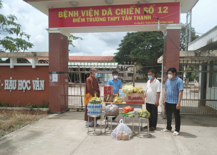 Sáng ngày 23 tháng 8 năm 2021( 16/07/ Tân Sửu), Thượng toạ Thích Lệ Tấn- Phó Ban Từ thiện xã hội Phật giáo tỉnh Long An, Trưởng Ban Trị sự GHPGVN huyện Tân Thạnh, Trụ trì chùa Giác Hoa ,Xã Hậu Thạnh Đông, huyện Tân Thạnh, tỉnh Long An, đã đến thăm, tặng quà tại 4 chốt kiểm dịch quốc lộ 62 và tỉnh lộ 837 giáp xã Trường Xuân Đồng Tháp Mười bệnh viện dã chiến số 12 và bếp cơm Huyện đội huyện Tân Thạnh.