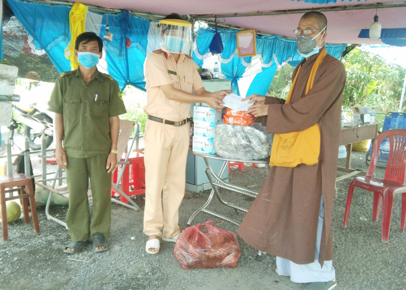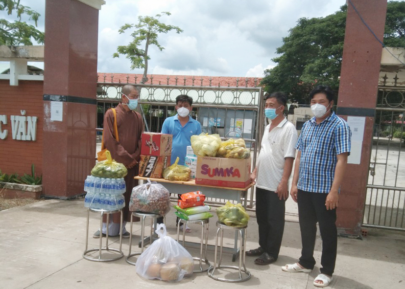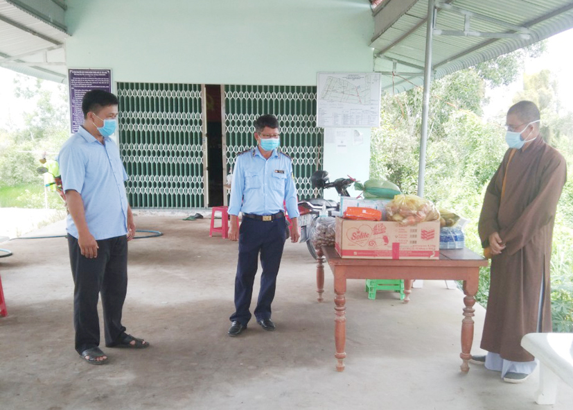 Đại diện Đoàn viếng thăm cho biết, TT. Thích Lệ Tấn những món quà nhỏ nhưng ý nghĩa này mong muốn tiếp thêm động lực các cán bộ trong khu cách ly vững vàng thực hiện nhiệm vụ, động viên người dân yên tâm cách ly, sớm hoàn thành cách ly để trở về với gia đình.