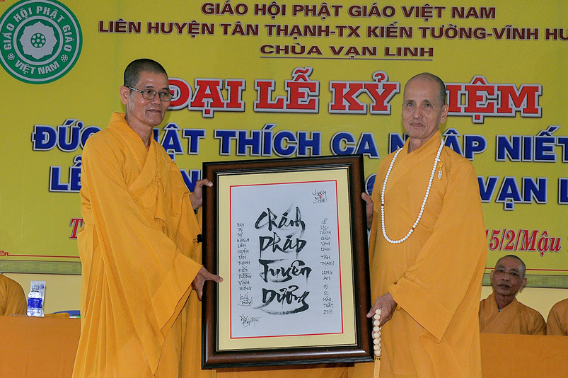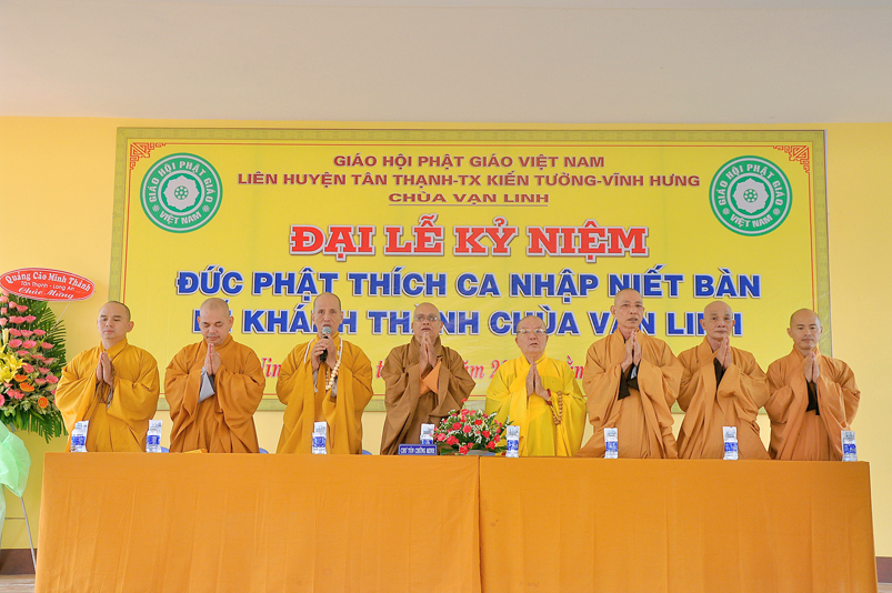 Hôm nay, ngày 15 tháng 2 năm Mậu Tuất là kỷ niệm Đức Phật Thích ca Mâu Ni nhập Niết bàn, chùa Vạn Linh long trọng tổ chức lễ khánh thành, khánh tạ Tam Bảo trong khung cảnh trang nghiêm thanh tịnh, đầy niềm hoan hỷ. Ban Tổ chức vinh dự được cung nghinh Chư Tôn Đức giáo phẩm: HT Thích Thiện Huệ – Chứng minh BTS GHPGVN Tỉnh Long An; HT Thích Thiện Tâm – Phó BTS kiêm Trưởng Ban Kiểm Soát BTS GHPGVN Tỉnh Long An; HT Thích Chơn Đạo – Giáo thọ Trường TCPH Long An, HT Thích Quảng Ý – UV BTS GHPGVN Tỉnh Long An – Trưởng BTS GHPGVN liên huyện Tân Thạnh, TX Kiến Tường, Vĩnh Hưng; TT Thích Lệ Tấn – UV BTS GHPGVN tỉnh Long An, Phó BTS liên huyện Tân Thạnh, TX Kiến Tường, Vĩnh Hưng; ĐĐ Thích Lệ Trí – UV HĐTS GPGVN, Trưởng Ban Giáo Dục Phật Giáo BTS GHPGVN Tỉnh Long An;