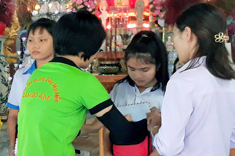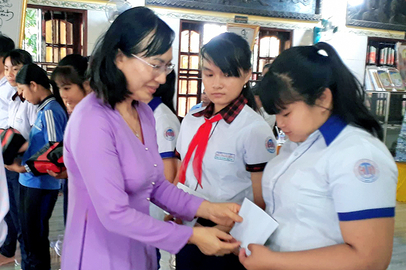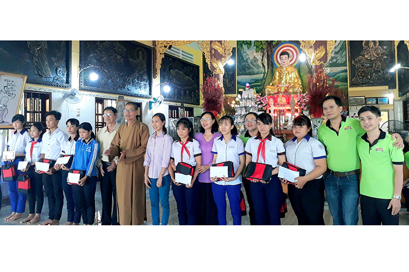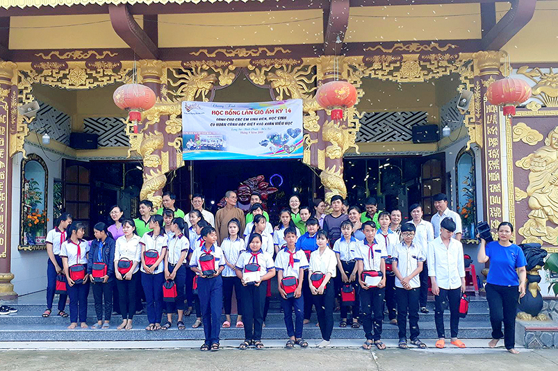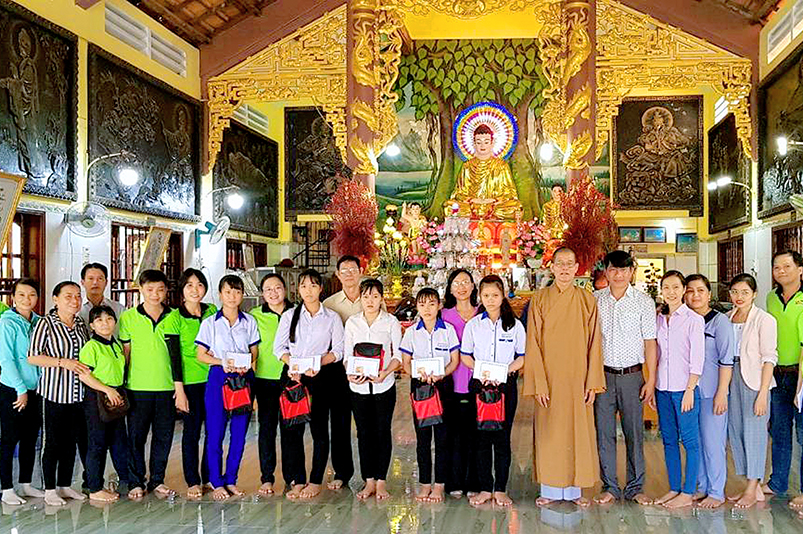 Chiều ngày 22 / 9 / 2019, chương trình “Học Bổng Làn Gió Ấm kỳ 14” đã đến đạo tràng chùa Giác Hoa – Tân Thạnh – Long An, dưới sự chứng minh của TT Thích Lệ Tấn – UV BTS GHPGVN tỉnh Long An – Phó trưởng ban Thường trực BTS GHPGVN liên huyện Tân Thạnh- TX- Kiến Tường – Vĩnh Hưng; Bà Trần Thị Huê – Phó Chủ tịch UBND Huyện Tân Thạnh và đại biểu trong đoàn cùng đi, Quý mạnh thường quân trong Hội Khuyến Học Chùa Giác Hoa đã đến cùng chia sẽ với chương trình, hiện diện với 32 em là sinh viên học sinh có hoàn cảnh đặc biệt khó khăn và hiếu học.