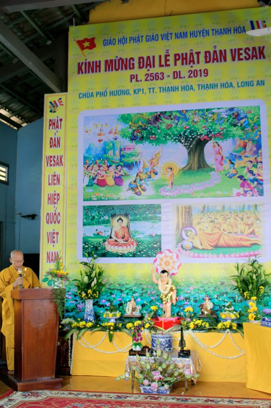 Vì công tác Phật sự đi tiền trạm tại Chùa Tam Chúc huyện Kim Bản tỉnh Hà Nam. Trụ sở chính diễn ra Đại Lễ Phật Đản Liên Hiệp Quốc Vesak từ ngày mùng 08 đến ngày 11tháng 4 năm Kỷ Hợi, nên HT. Thích Minh Thiện _uỷ viên HĐTS, phó ban hoằng Pháp TƯ GHPGVN, trưởng BTS GHPGVN tỉnh Long An, vào lúc 16h ngày 30/03/ Kỷ Hợi đã về chứng minh, chỉ đạo công tác Phật sự tại huyện Thạnh Hóa và khi chính thức diễn ra Đại lễ vẫn Hòa thượng vẫn không quên gửi lời chúc mừng Đại Lễ thành công tốt đẹp.