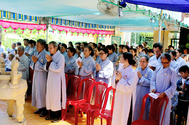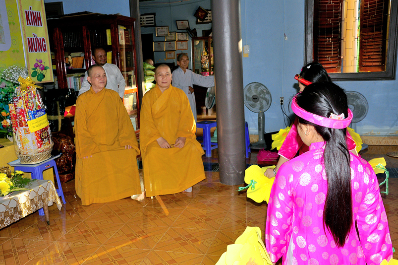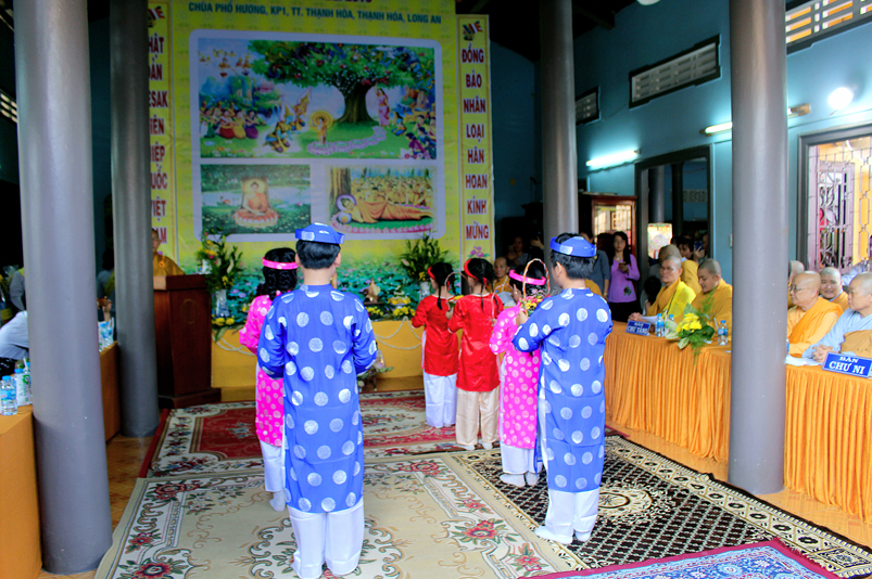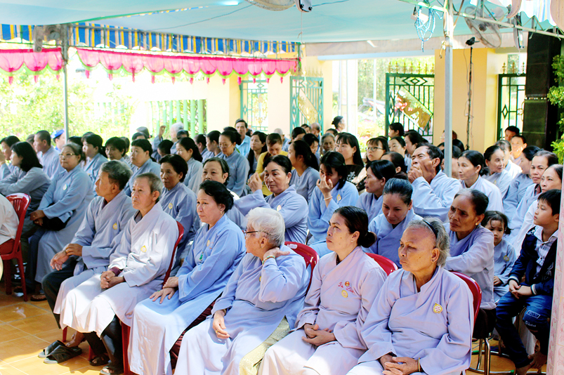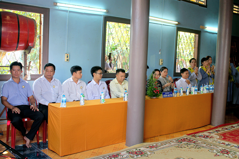 Về phía chính quyền lãnh đạo các cấp có : bà Nguyễn Thị Thanh Vân chủ tịch HLHPNVN huyện Thạnh Hóa; ông Nguyễn Minh Trang phó chủ tịch MTTQVN huyện Thạnh Hóa; ông Huỳnh Thanh An chuyên viên PNV huyện Thạnh Hóa; ông Phạm Hồng Tâm phó chủ tịch UBND thị trấn Thạnh Hóa; bà Lê Thị Hợp phó chủ tịch HĐND thị trấn Thạnh Hóa; ông Lê Thanh Hà chủ tịch MTTQVN thị trấn Thạnh Hóa; ông Huỳnh Thanh Hùng chủ tịch MTTQVN xã Thuận Nghĩa Hoà; ông Nguyễn Thanh Tâm phó chủ tịch MTTQVN xã Thuỷ Tây; ông Tạ Tấn Phú BTCB trưởng ấp 1 xã Thuỷ Tây và sự hiện diện của đông đảo Phật tử các đạo tràng trong và ngoài huyện đồng tham dự.