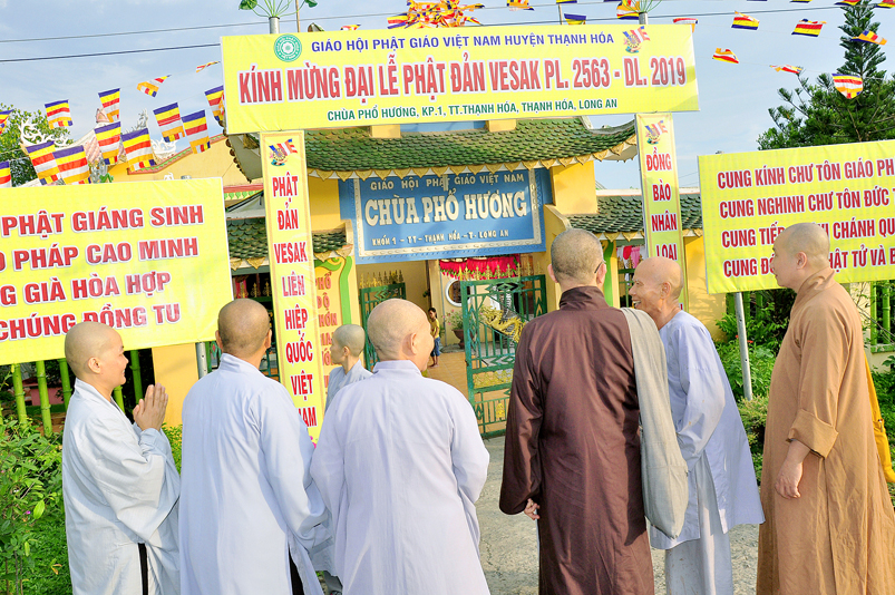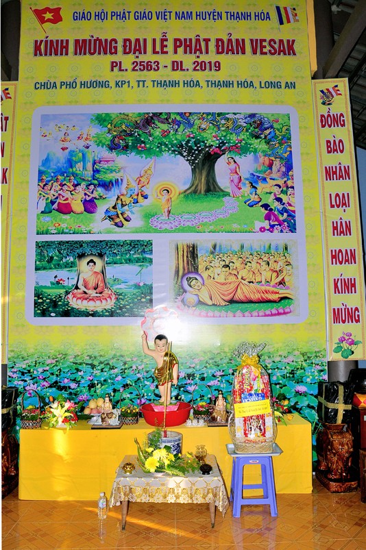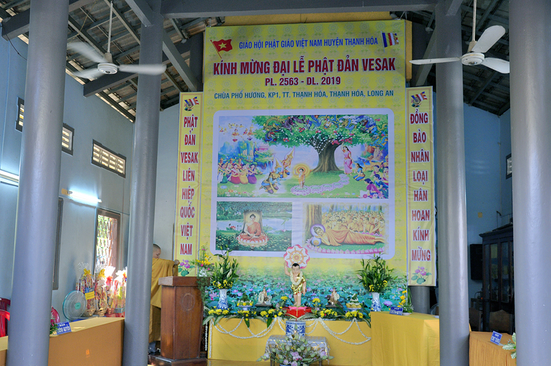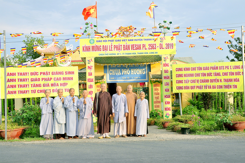 Sáng ngày 05/05/2019 (nhằm ngày 01/04/ Kỷ Hợi). Tại văn phòng BTS GHPGVN huyện Thạnh Hóa, Chùa Phổ Hương khu phố 1 thị trấn Thạnh Hóa, tỉnh Long An, đã trang nghiêm long trọng tiến hành Đại Lễ Kính Mừng Phật Đản Liên Hiệp Quốc Vesak 2019. Theo truyền thống, đây là ngày tưởng niệm ba sự kiện _Đản sanh _ Thành đạo _ Nhập Niết Bàn _ của Đức Phật, gọi là ngày Tam hợp.