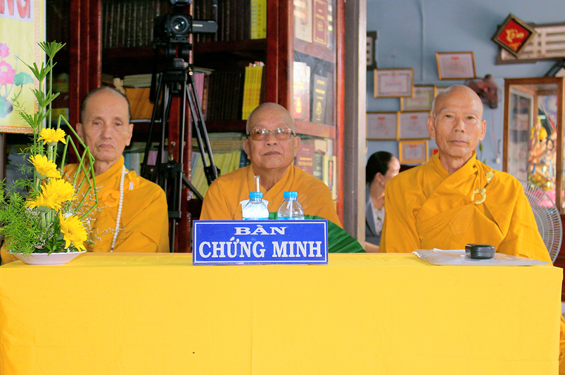Chứng minh và tham dự Đại lễ có: HT. Thích Huệ Hồng _chứng minh BTSGHPGVN tỉnh Long An, trụ trì Chùa Phổ Minh; HT. Thích Thiện Tâm _ phó BTS kiêm trưởng ban kiểm soát GHPGVN tỉnh Long An; HT. Thích Quảng Ý _trưởng BTS GHPGVN liên huyện Tân Thạnh _Kiết Tường _Vĩnh Hưng; ĐĐ. Thích Lệ Tấn _ phó BTS GHPGVN liên huyện Tân Thạnh _ Kiết Tường _Vĩnh Hưng; ĐĐ. Thích Lệ Duyên- chánh thư ký kiêm trưởng ban Phật giáo quốc tế BTS GHPGVN tỉnh Long An- chủ nhiệm lớp sơ cấp Phật học tỉnh Long An; ĐĐ.Thích Lệ Thông trưởng ban Hoằng pháp BTS GHPGVN liên huyện Tân Thạnh -Kiết Tường – Vĩnh Hưng; ĐĐ.Thích Huệ Thông trưởng ban Thông tin truyền thông BTS GHPGVN tỉnh Long An. Về phía chư ni có: NT.Thích nữ Như Hương trưởng BTS GHPGVN huyện Thạnh Hóa, Trưởng ban tổ chức,: NS. Thích nữ Phúc Liên phó trụ trì Tịnh Xá Ngọc Tâm; NS. Thích nữ Như Liên phó BTS GHPGVN liên huyện Tân Thạnh – Kiết Tường- Vĩnh Hưng, cùng Chư Tăng Ni trụ trì, lãnh đạo các cấp trông huyện Thạnh Hóa đồng về tham dự.