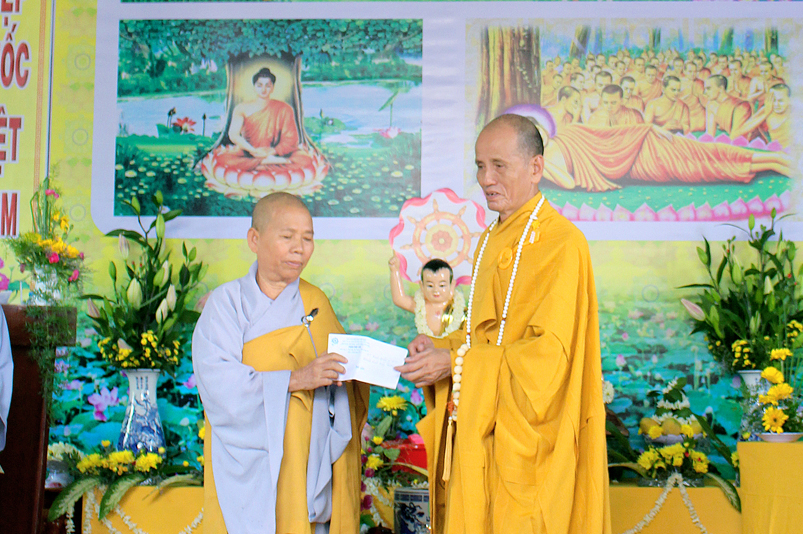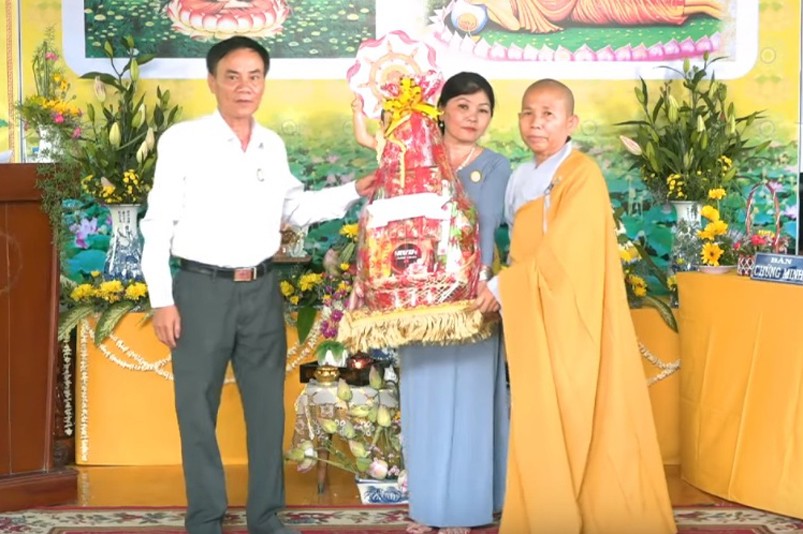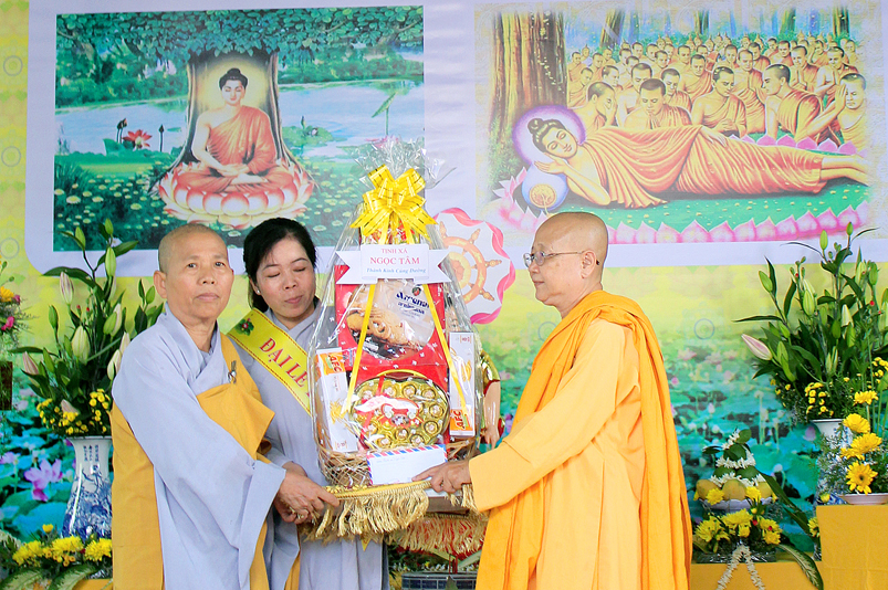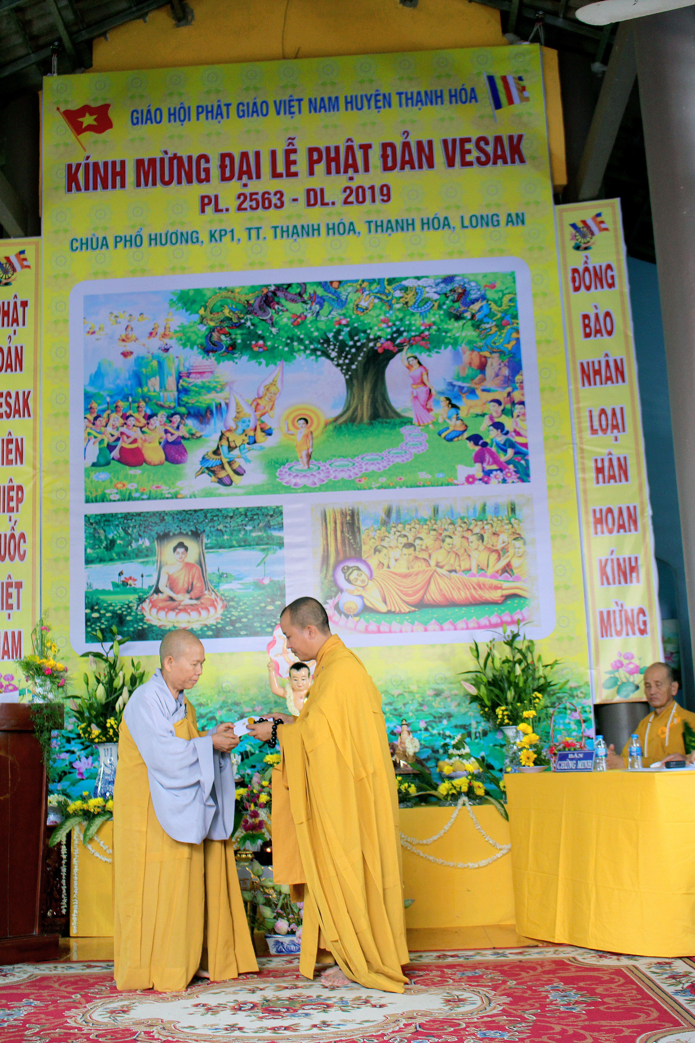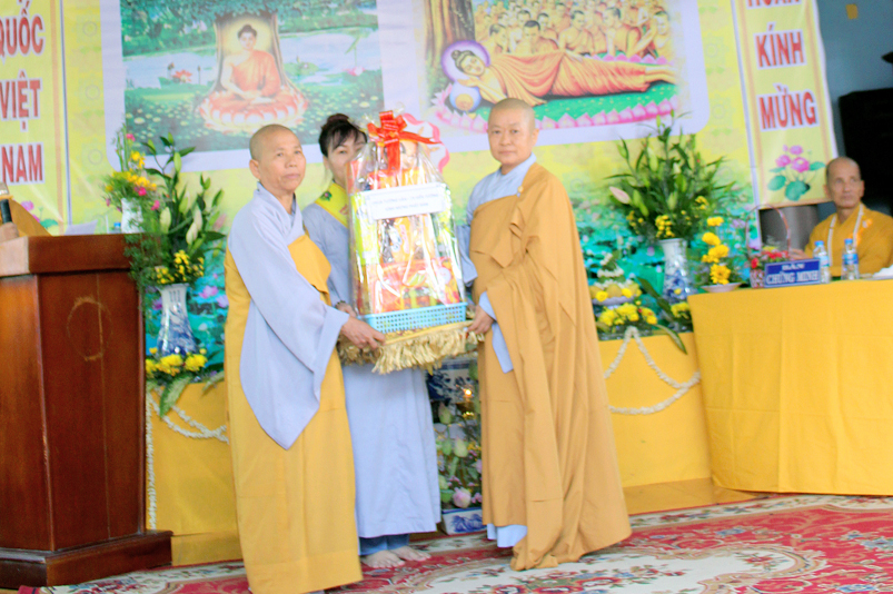 Qua phần tuyên đọc diễn văn là phần tặng quà, tịnh tài từ Chư Tôn đức các cấp Giáo hội trụ trì các tự viện và các cấp chính quyền. NT. Thích nữ Như Hương và Chư Tôn đức Ni Tịnh Xá Ngọc Tâm đã tặng tịnh tài 50 triệu đồng về việc xây cầu nông thôn trong mùa Phật Đản Liên Hiệp Quốc Vesak 2019.