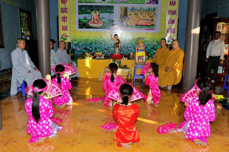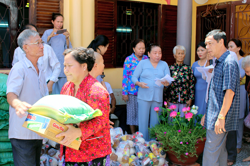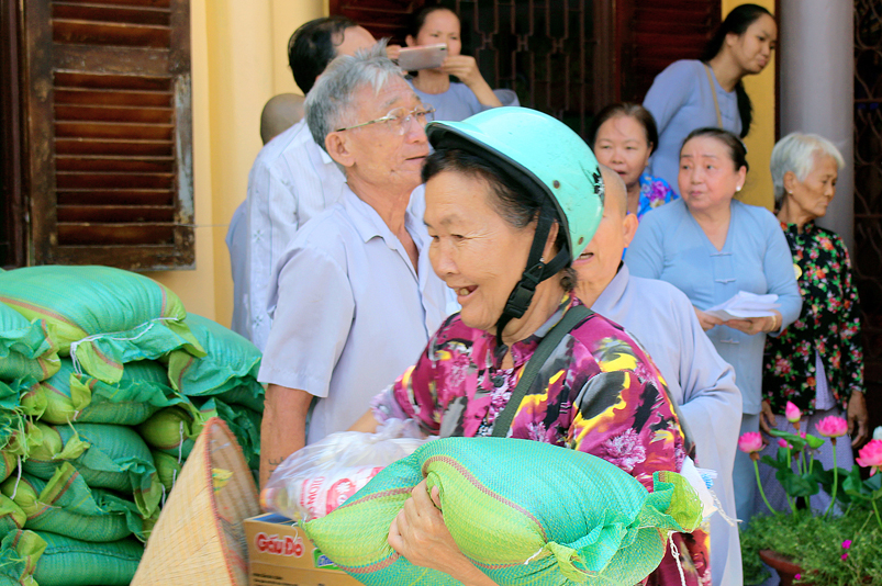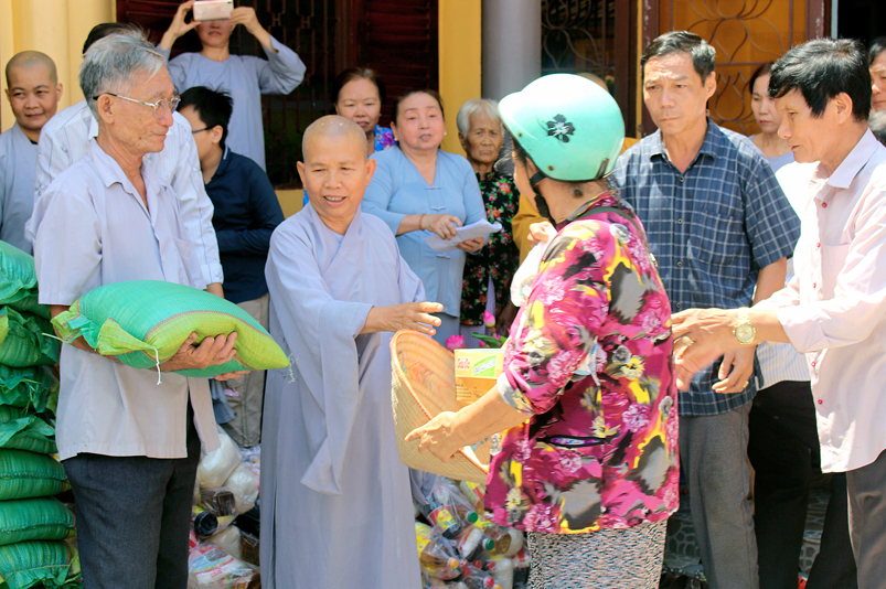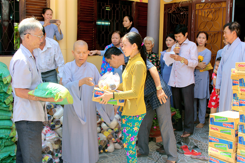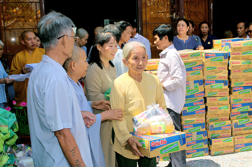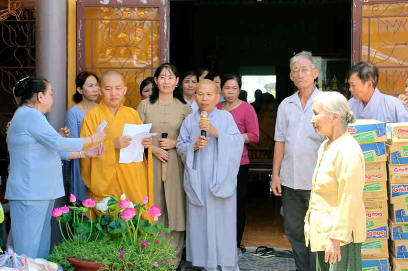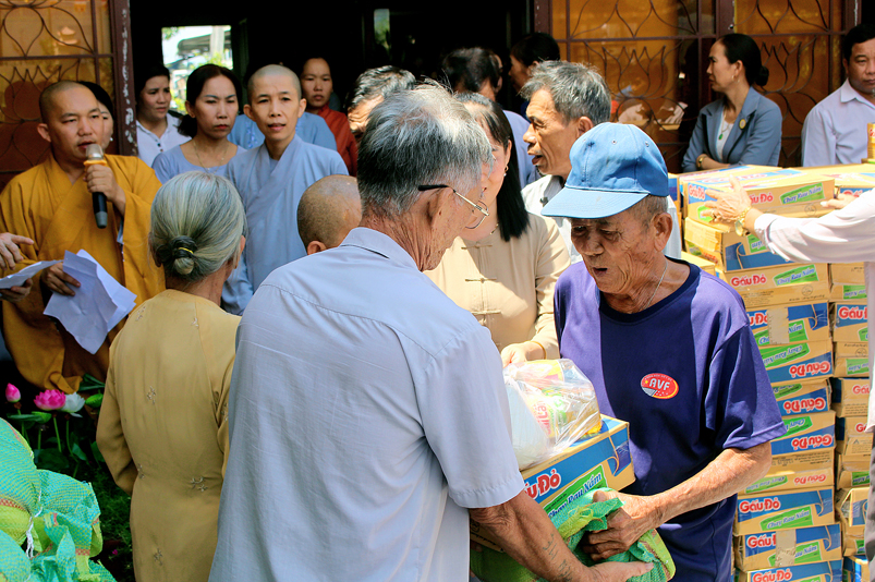 Trong tinh thần Đại Lễ hôm nay, NT. Thích nữ Như Hương luôn quan tâm lo lắng đến những gia đình và các em thiếu nhi có hoàn cảnh khó khăn đã phát 100 phần quà cho các hộ nghèo và 50 phần quà cho các em học sinh hiếu học mỗi phần trị giá 200 ngàn đồng.