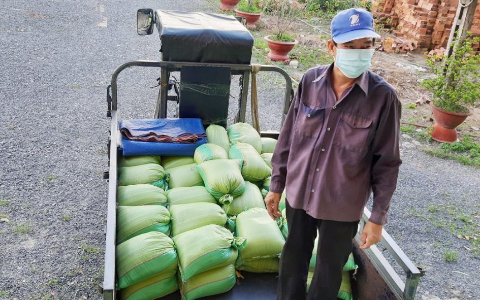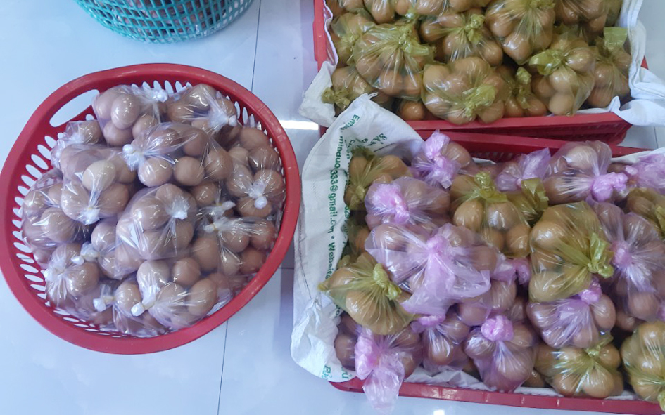 Quà gồm 1,5 tấn gạo 70 thùng mì, 200 chai nước tương. 200kg đường. 2000 trứng gà.Tổng trị giá hơn 30 triệu đồng.