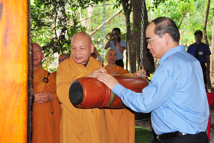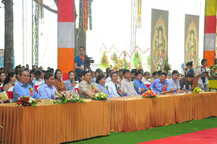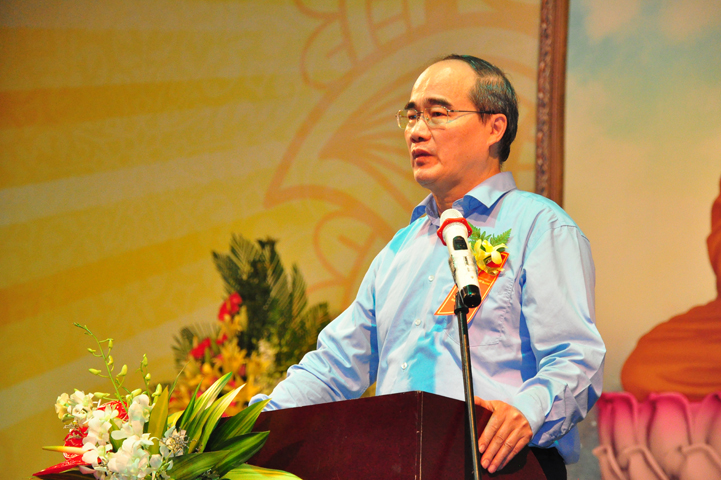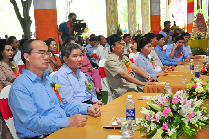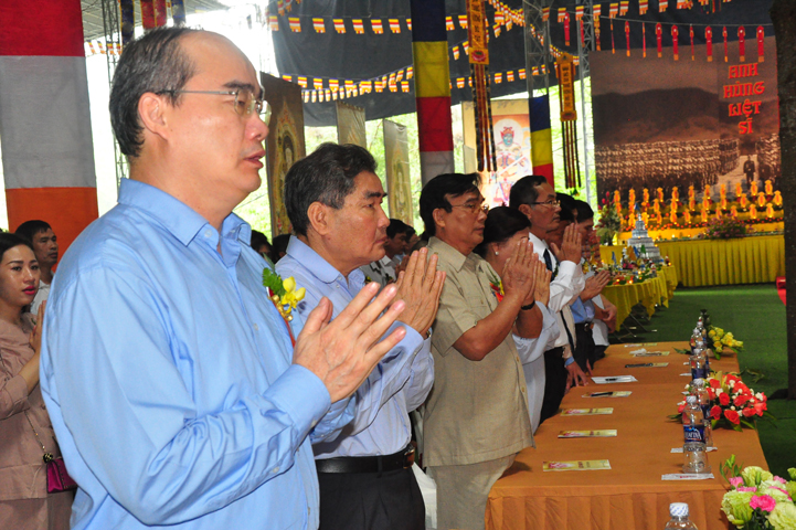 Hòa trong không khí thiêng liêng của Lễ hội, ông Nguyễn Thiện Nhân đại diện khách quý lãnh đạo cấp cao TW trân trọng phát biểu tri ân chư Tôn Giáo phẩm đã tổ chức Lễ trai đàn vô cùng trang nghiêm. Điều đó giúp cho mọi người có cơ hội nhớ về những người chiến sĩ đã một thời hy sinh tuổi thanh xuân, cống hiến phục vụ cho đất nước. Đất nước Việt Nam từ già đến trẻ đều phấn khởi tình nguyện xung phong gia nhập tòng quân, trong đó có Võ Thị Sáu – người con gái vùng miền Đông đất đỏ đã dũng cảm quên mình vì quê hương đất nước, làm sáng đẹp tinh thần yêu nước của dân tộc Việt Nam. Tổ quốc ghi công, toàn dân Việt Nam nhớ mãi công lao của các chiến sĩ, nghĩa cử cao đẹp của chư hương linh liệt sĩ mãi mãi sống trong lòng người hiện tại, tiếp tục ổn định và phát huy tinh thần bất khuất ấy. Đồng thời, ông hy vọng Phật giáo sẽ có nhiều nơi tổ chức các Trai đàn như thế này để siêu độ an ủi người đã khuất.