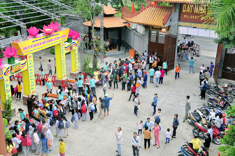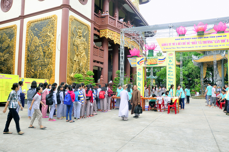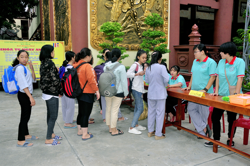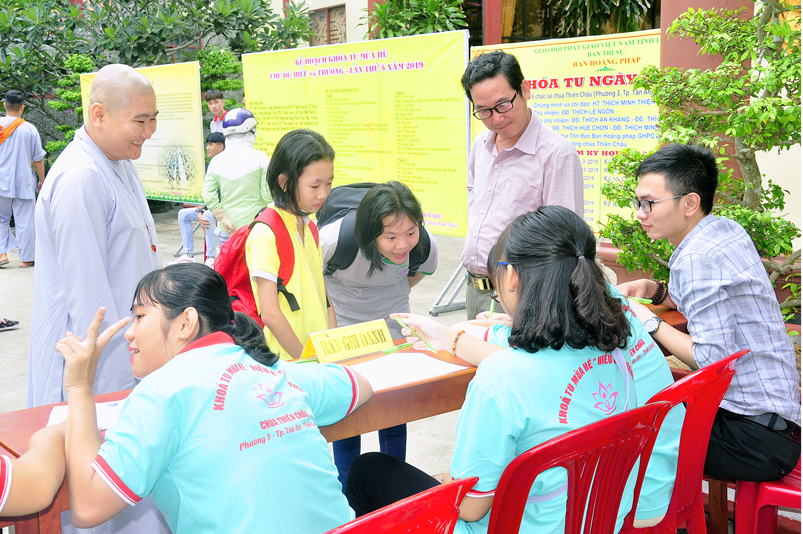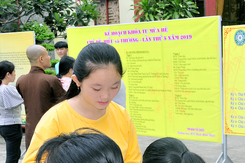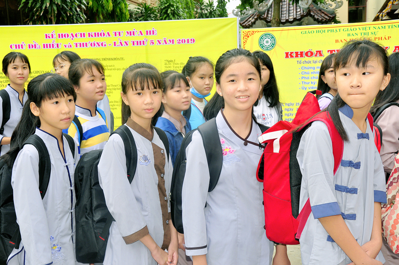 Khóa tu năm nay, khóa sinh tham dự nhiều hơn so với những năm trước. Hơn 300 khóa sinh với nhiều độ tuổi khác nhau, để tiện việc quản lí các em, Ban tổ chức phân chia theo từng nhóm, có phần chấm điểm thi đua tu học, kiểm tra trình độ tri thức, xếp loại biểu dương.