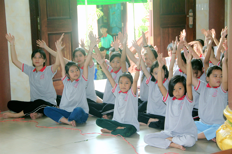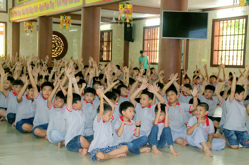 Theo thời khóa biểu, vào buổi sáng, các em được tập trung lại để nghe phổ biến nội quy khóa tu, hiệu lệnh và học các điều căn bản như oai nghi, cách giao tiếp trong nhà chùa. Ngoài ra, các em còn được quý Thầy Cô và các anh chị tình nguyện viên hướng dẫn các kỹ năng vui chơi, dạy ca hát, phát huy năng lực sở trường của mọi cá nhân, đúng theo tinh thần  chủ đề “Hiều và Thương” mà  Ban tổ chức muốn hướng đến.