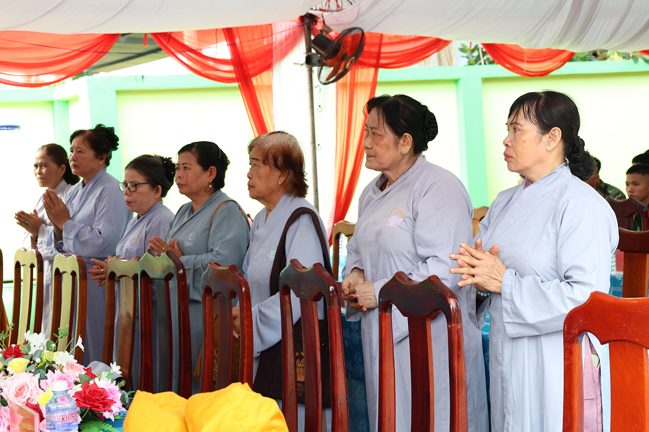 Về phía phật giáo có: Thượng tọa Thích Lệ Tấn- Chứng minh Ban Trị sự GHPGVN tỉnh Tây Ninh; TT. Thích Quảng Tâm – Ủy viên HĐTSTƯ, Trưởng Ban Trị sự GHPGVN tỉnh Tây Ninh; ĐĐ Thích Thiện Thức- Phó Ban Thường trực BTS. GHPGVN tỉnh; ĐĐ. Thích Lệ Duyên- Phó Ban kiêm Chánh thư ký BTS. GHPGVN tỉnh; ĐĐ. Thích Nguyên Tấn- Phó BTS. GHPGVN tỉnh cùng đông đảo cán bộ, chiến sĩ LLVT tỉnh, tăng ni phật tử và nhân dân trên địa bàn xã Nhơn Ninh.