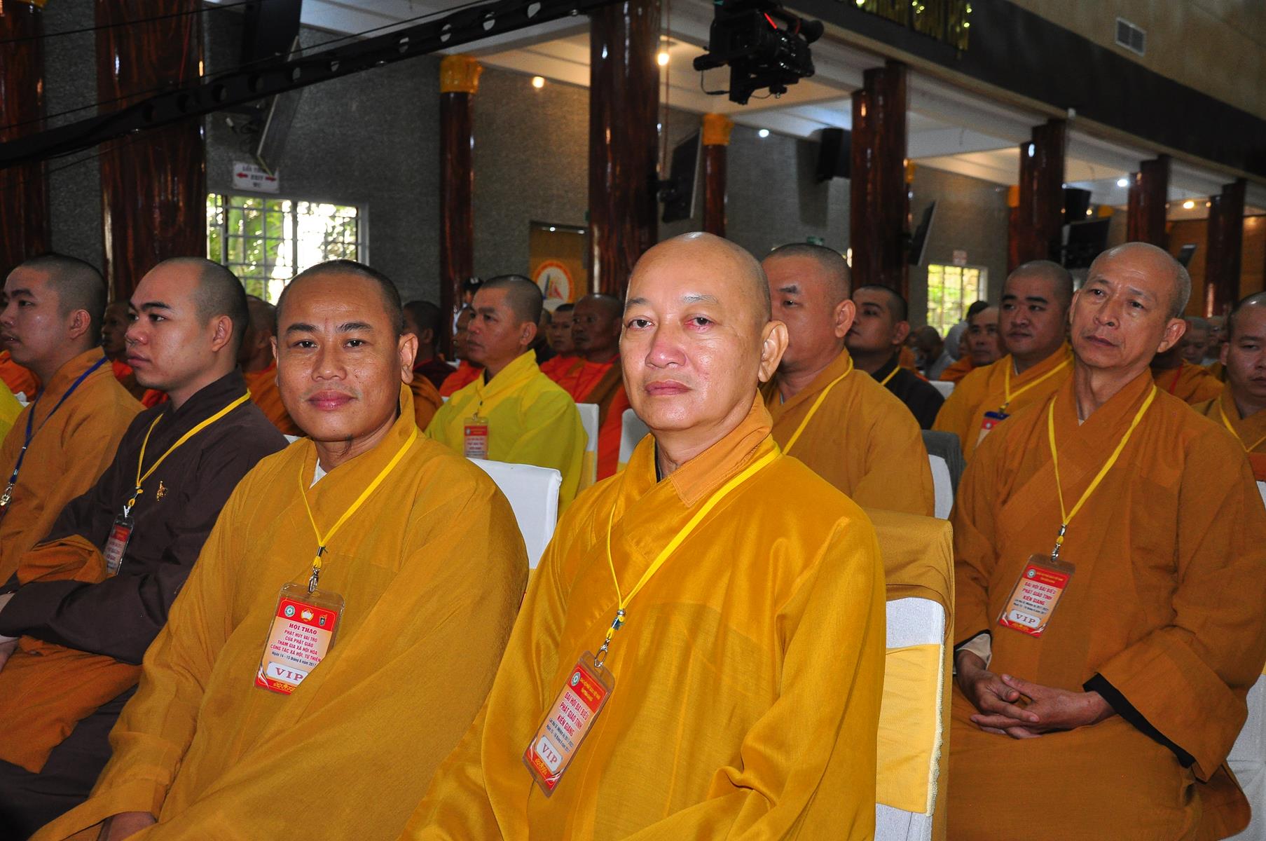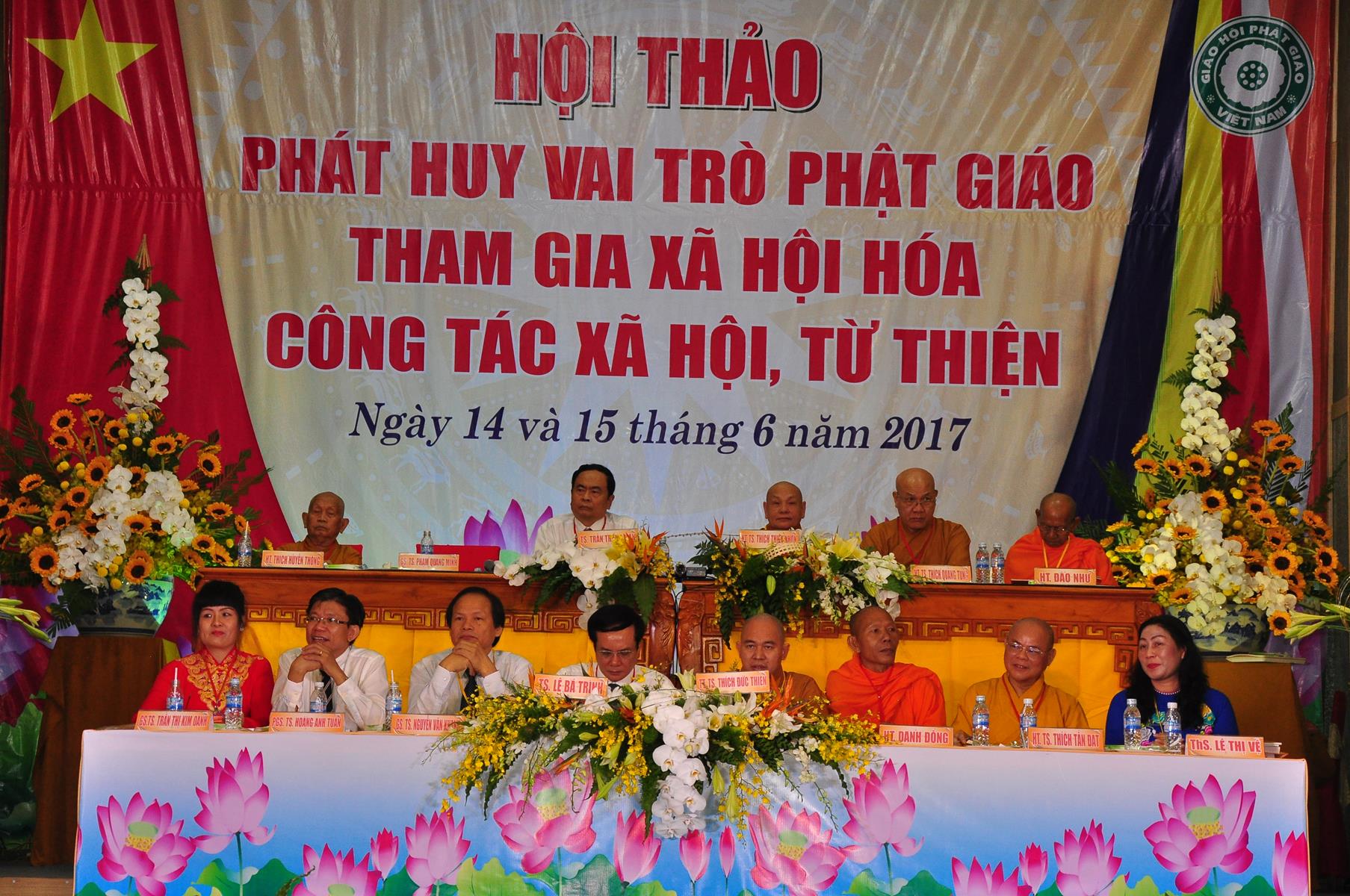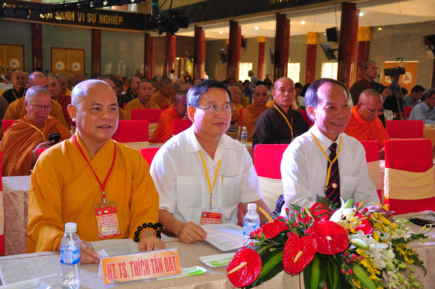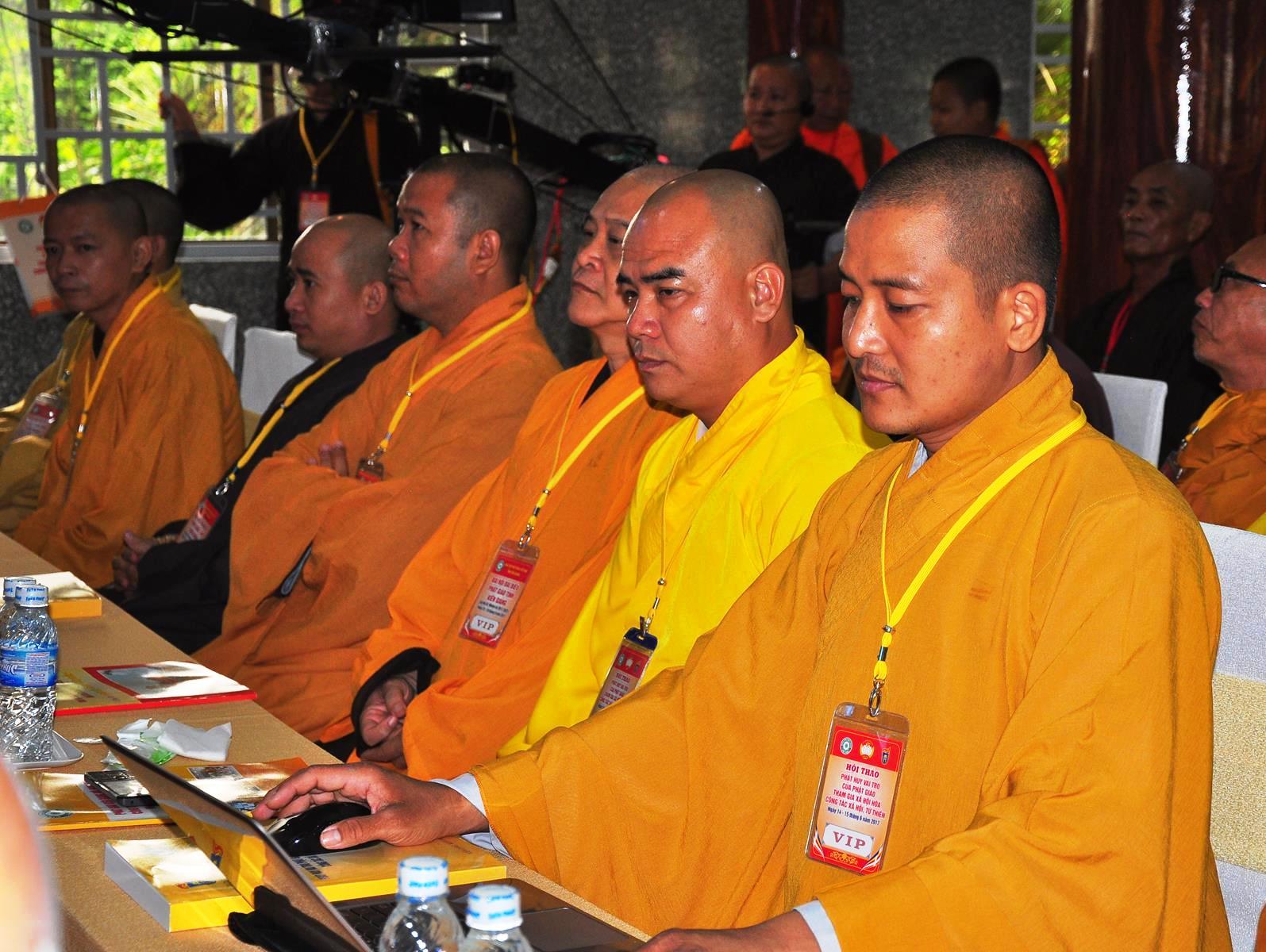 HT Thích Thiện Nhơn: Chủ tịch Hội đồng Trị sự GHPGVN; HT Thích Quảng Tùng: Phó Chủ tịch HĐTS, Trưởng Ban Từ thiện Xã hội TƯ; HT Thích; TT Thích Đức Thiện: Tổng Thư ký HĐTS GHPGVN; HT Thích Thiện Đức: UVTT HĐTS, Phó Trưởng ban Kiểm soát TƯ; HT Thích Tấn Đạt: UVTT HĐTS, Phó Trưởng ban TT Ban Hoằng pháp TƯ, Phó trưởng ban Từ thiện TƯ, Phó Văn phòng 2, Ủy viên ban tổ chức Hội thảo ; HT Danh Lung: UVTT HĐTS, Phó Văn phòng 2; HT Thích Minh Thiện: UV HĐTS, Phó trưởng ban Hoằng pháp TƯ, Phó Trưởng ban Từ Thiện Xã hội TƯ, Ủy viên Ban tổ chức Hội thảo, Trưởng ban Trị sự GHPGVN tỉnh Long An; HT Thích Huyền Thông: UV HĐTS, Phó Trưởng ban Thường trực BTS GHPGVN tỉnh Long An.