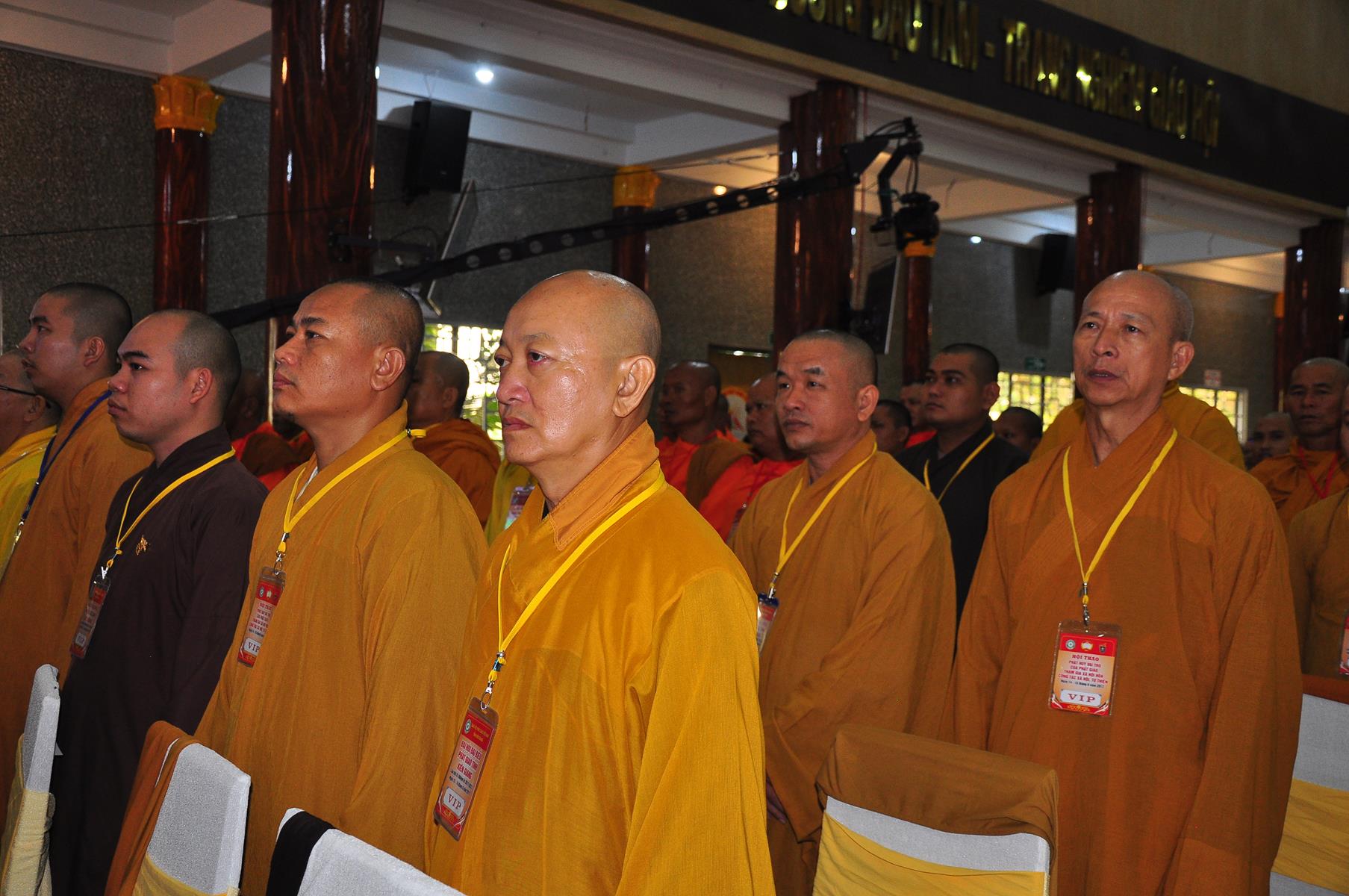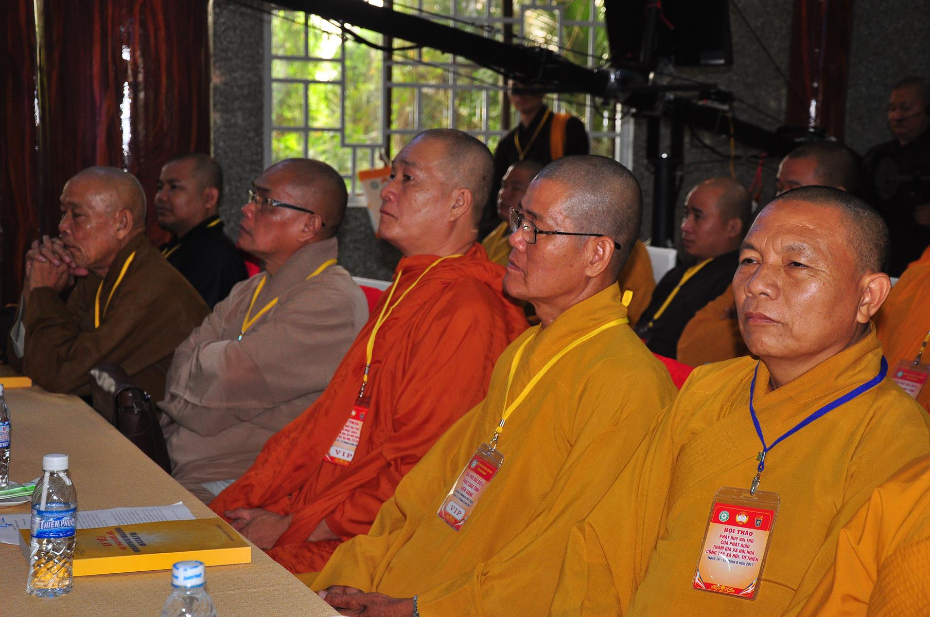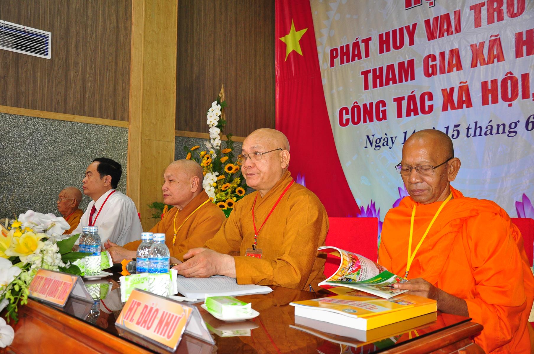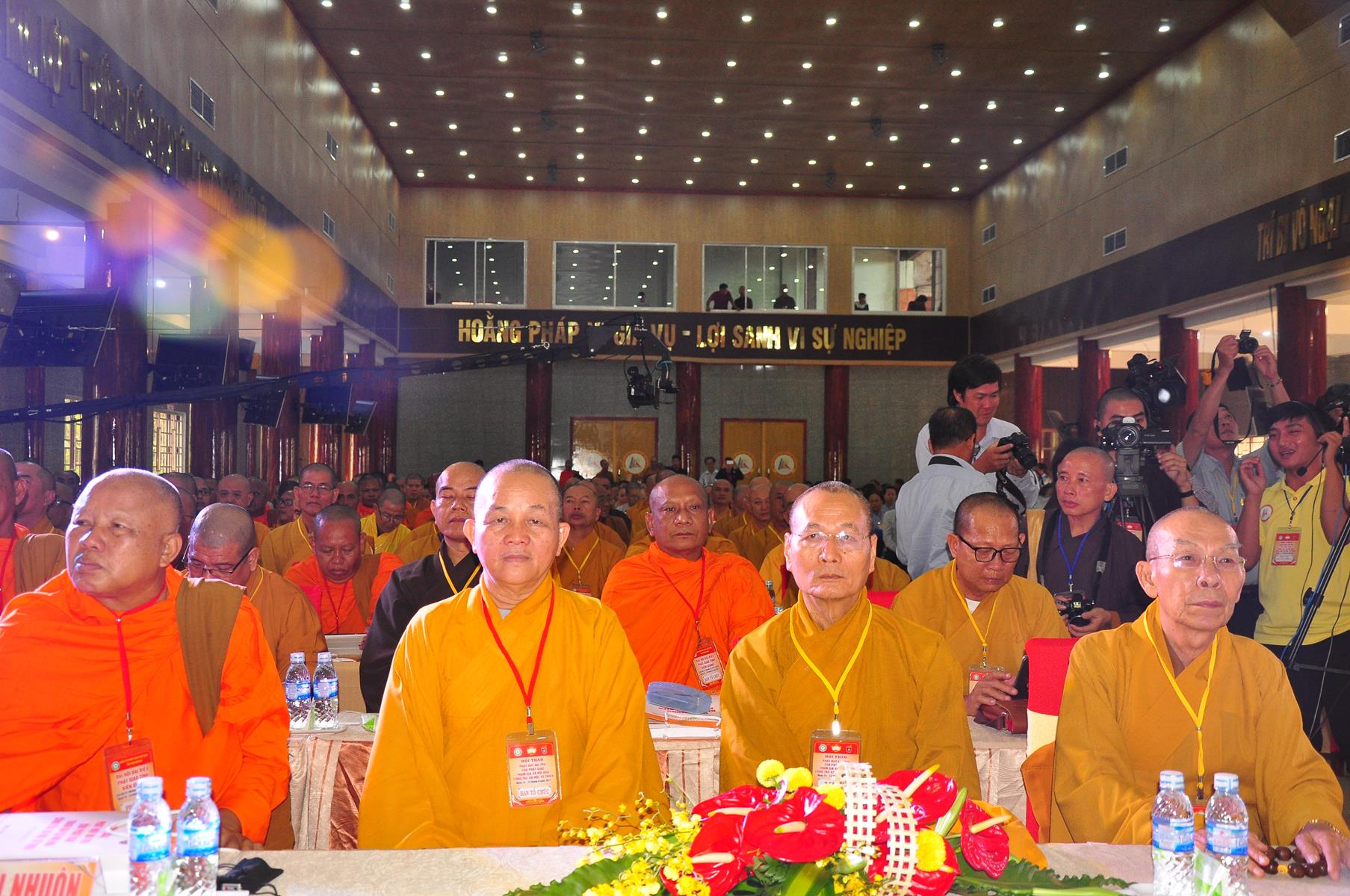 HT Thích Thiện Nhơn: Chủ tịch Hội đồng Trị sự GHPGVN; HT Thích Quảng Tùng: Phó Chủ tịch HĐTS, Trưởng Ban Từ thiện Xã hội TƯ; HT Thích; TT Thích Đức Thiện: Tổng Thư ký HĐTS GHPGVN; HT Thích Thiện Đức: UVTT HĐTS, Phó Trưởng ban Kiểm soát TƯ; HT Thích Tấn Đạt: UVTT HĐTS, Phó Trưởng ban TT Ban Hoằng pháp TƯ, Phó trưởng ban Từ thiện TƯ, Phó Văn phòng 2, Ủy viên ban tổ chức Hội thảo ; HT Danh Lung: UVTT HĐTS, Phó Văn phòng 2; HT Thích Minh Thiện: UV HĐTS, Phó trưởng ban Hoằng pháp TƯ, Phó Trưởng ban Từ Thiện Xã hội TƯ, Ủy viên Ban tổ chức Hội thảo, Trưởng ban Trị sự GHPGVN tỉnh Long An; HT Thích Huyền Thông: UV HĐTS, Phó Trưởng ban Thường trực BTS GHPGVN tỉnh Long An.