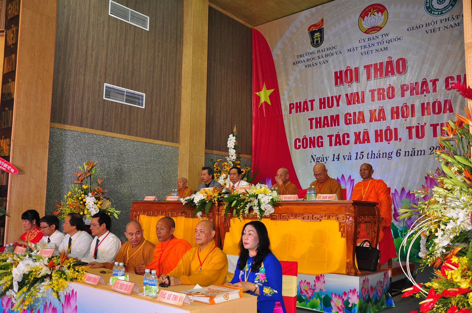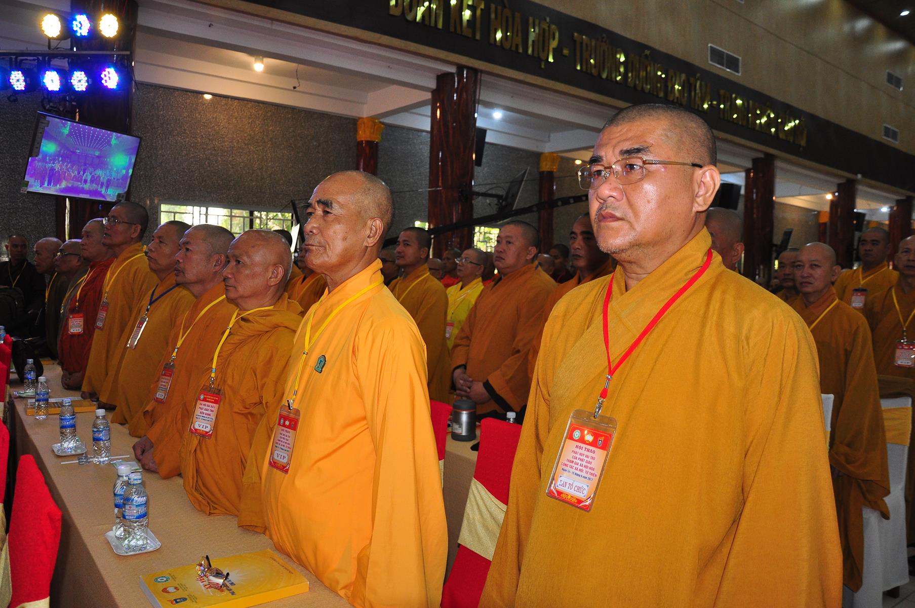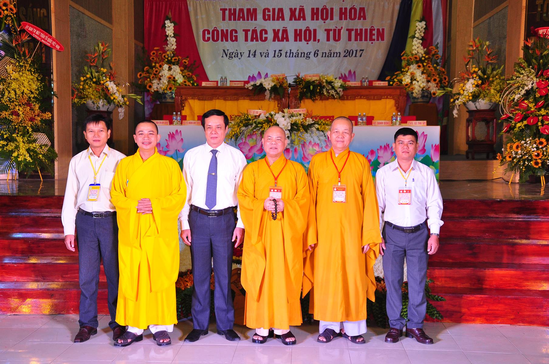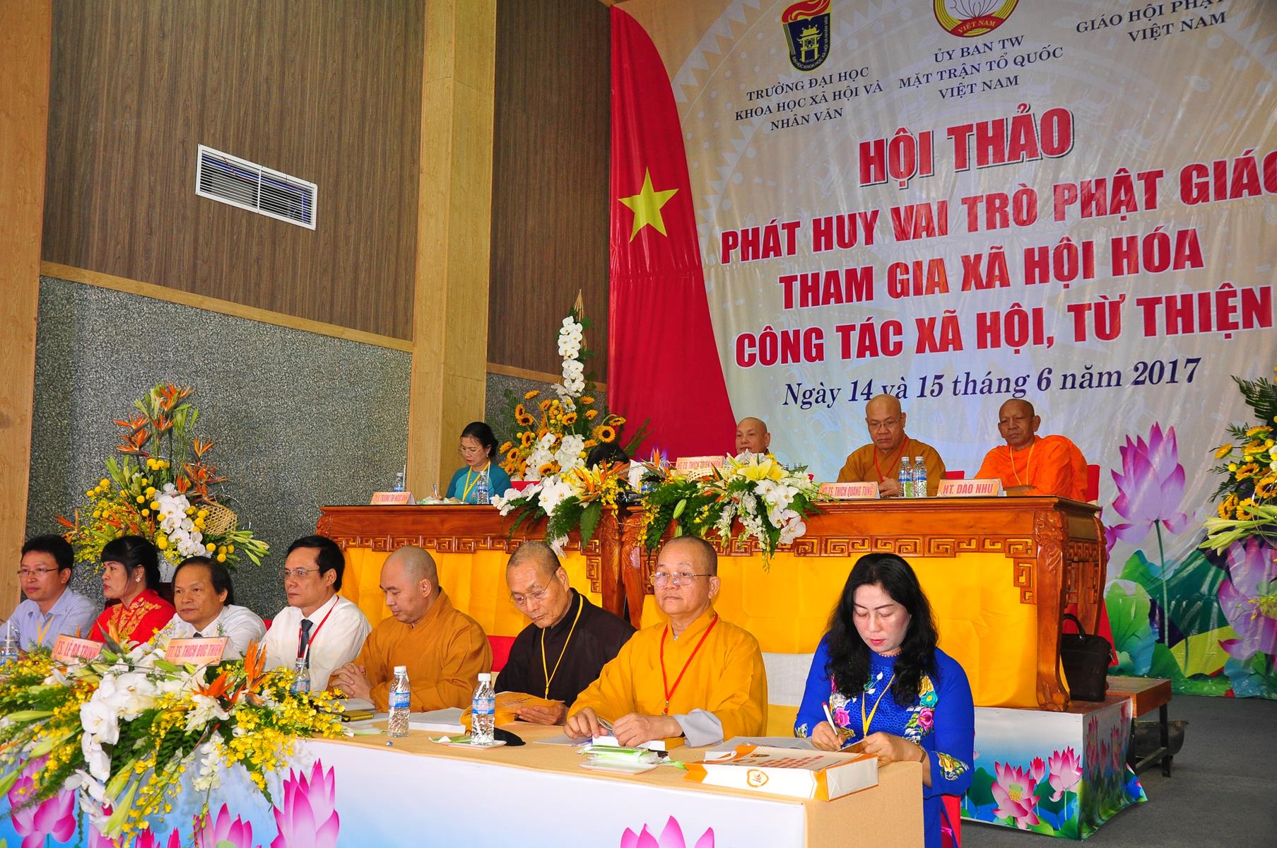 HT Thích Thiện Nhơn: Chủ tịch Hội đồng Trị sự GHPGVN; HT Thích Quảng Tùng: Phó Chủ tịch HĐTS, Trưởng Ban Từ thiện Xã hội TƯ; HT Thích; TT Thích Đức Thiện: Tổng Thư ký HĐTS GHPGVN; HT Thích Thiện Đức: UVTT HĐTS, Phó Trưởng ban Kiểm soát TƯ; HT Thích Tấn Đạt: UVTT HĐTS, Phó Trưởng ban TT Ban Hoằng pháp TƯ, Phó trưởng ban Từ thiện TƯ, Phó Văn phòng 2, Ủy viên ban tổ chức Hội thảo ; HT Danh Lung: UVTT HĐTS, Phó Văn phòng 2; HT Thích Minh Thiện: UV HĐTS, Phó trưởng ban Hoằng pháp TƯ, Phó Trưởng ban Từ Thiện Xã hội TƯ, Ủy viên Ban tổ chức Hội thảo, Trưởng ban Trị sự GHPGVN tỉnh Long An; HT Thích Huyền Thông: UV HĐTS, Phó Trưởng ban Thường trực BTS GHPGVN tỉnh Long An.
