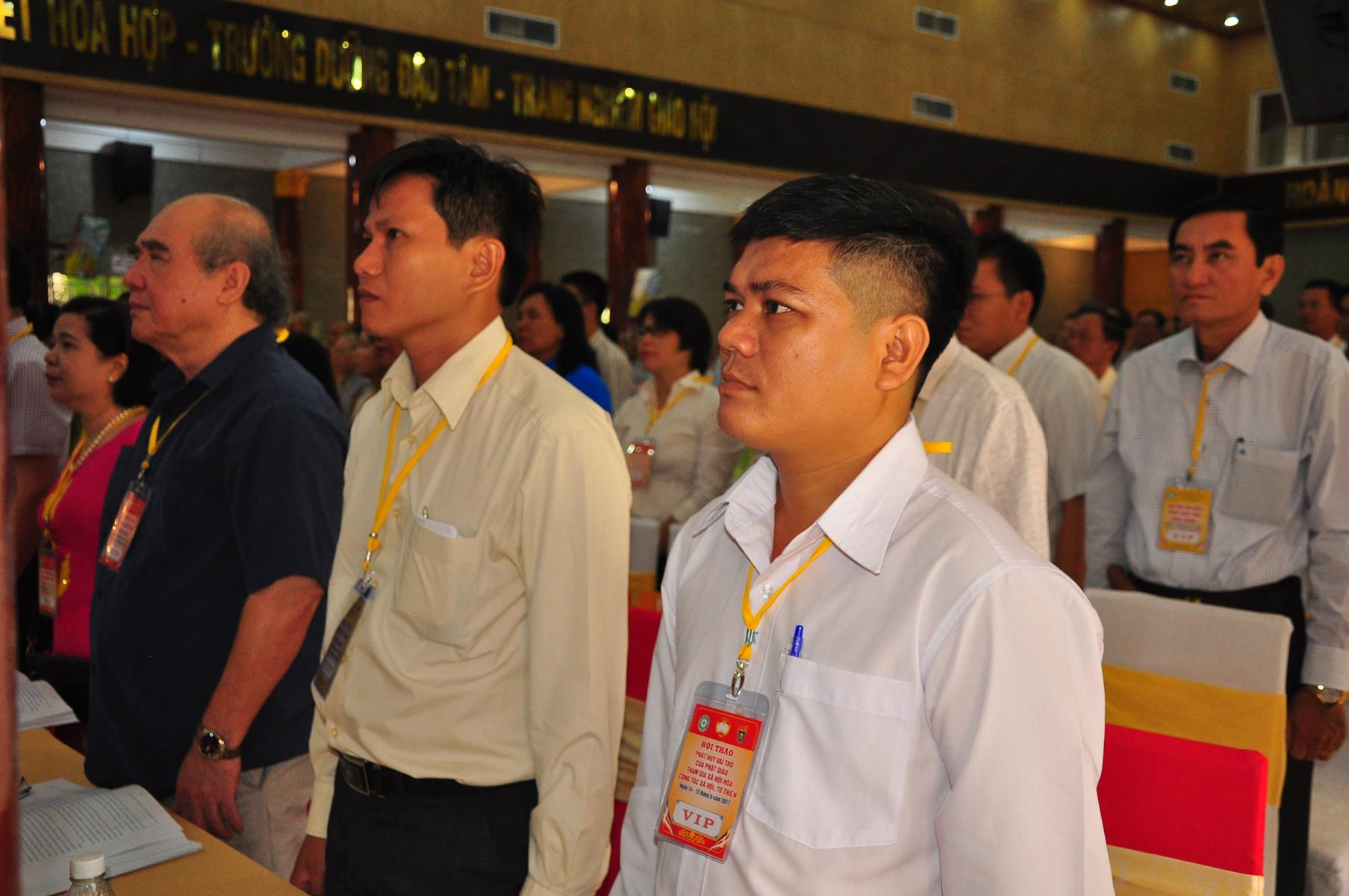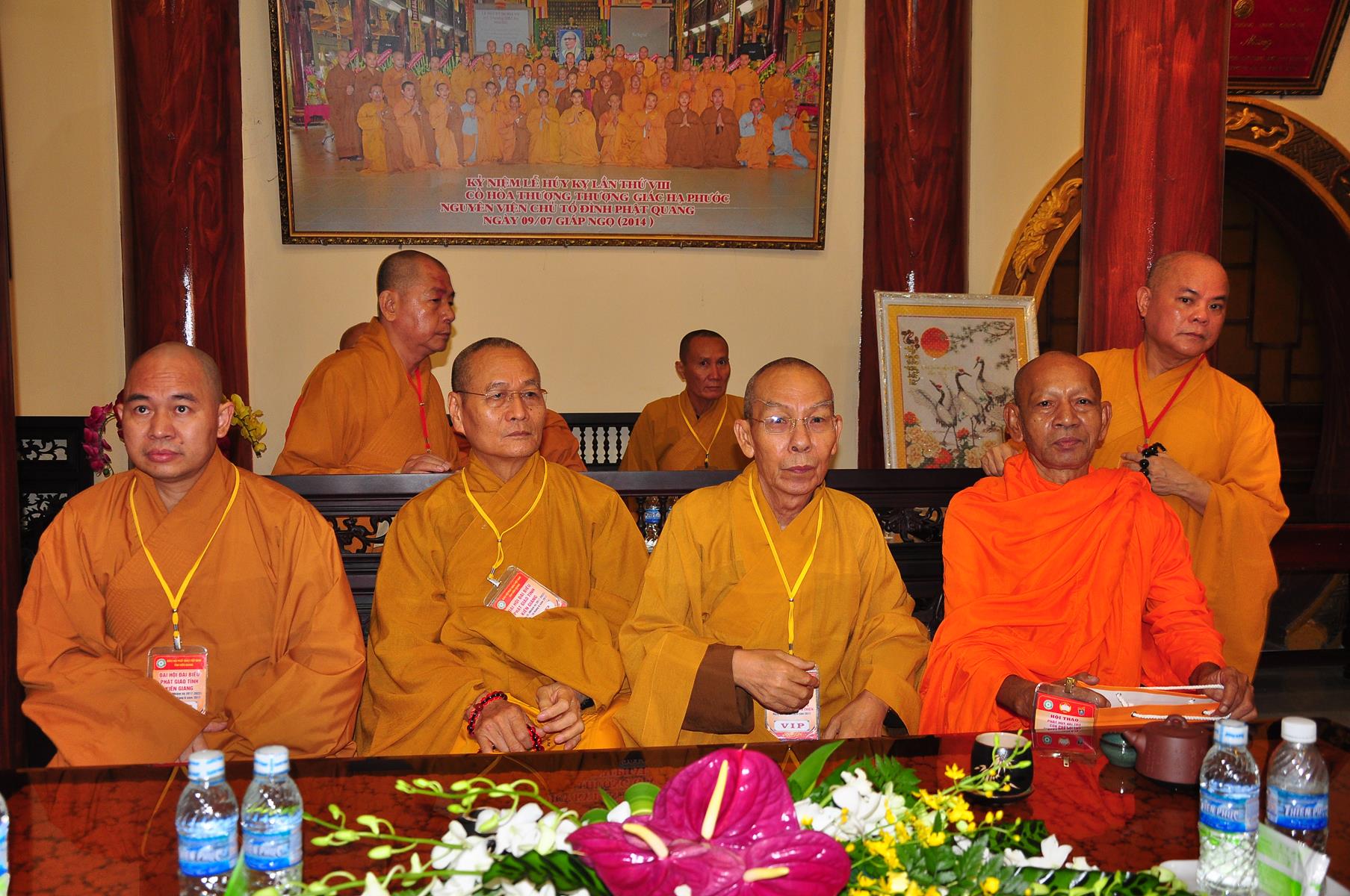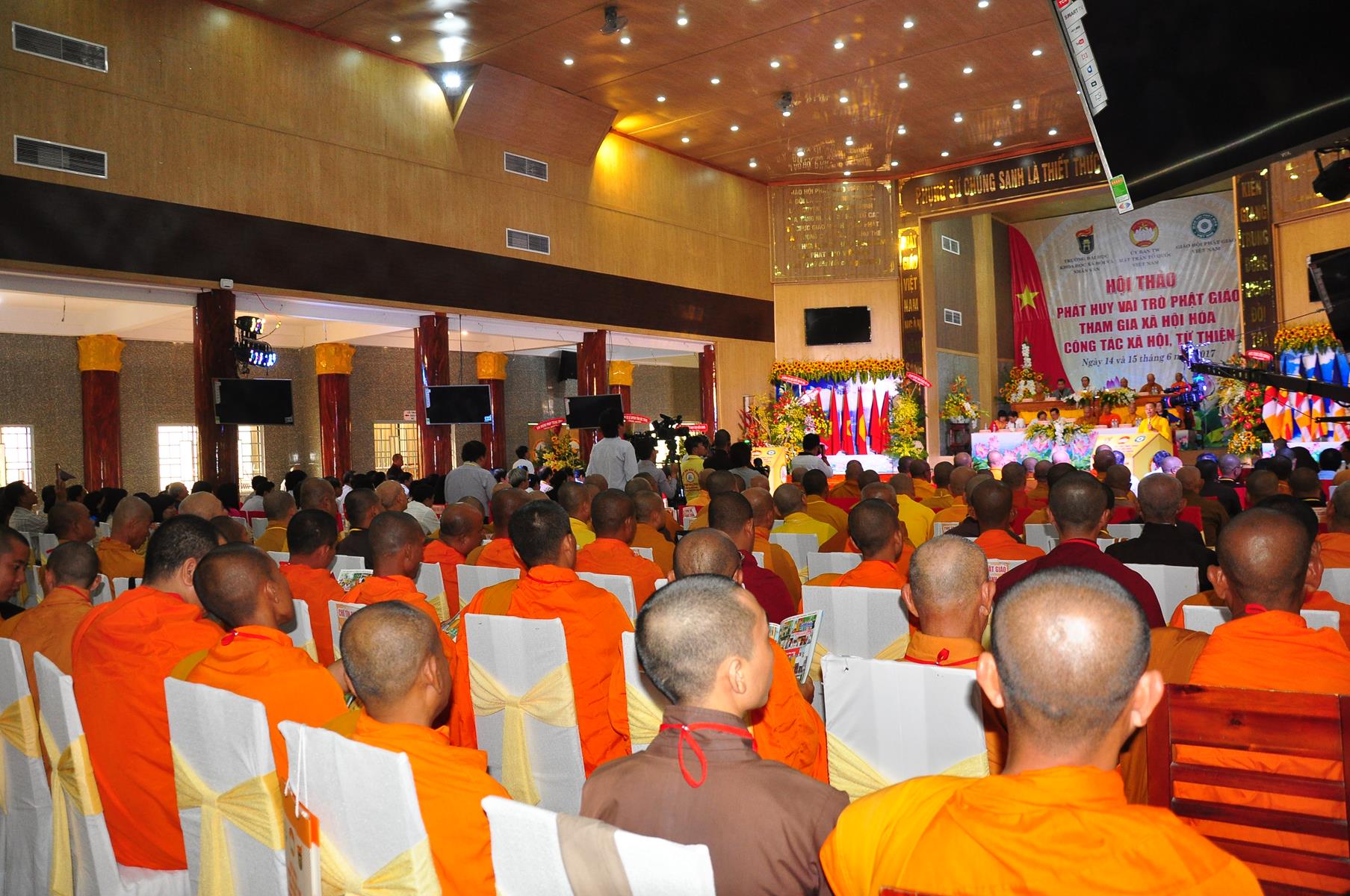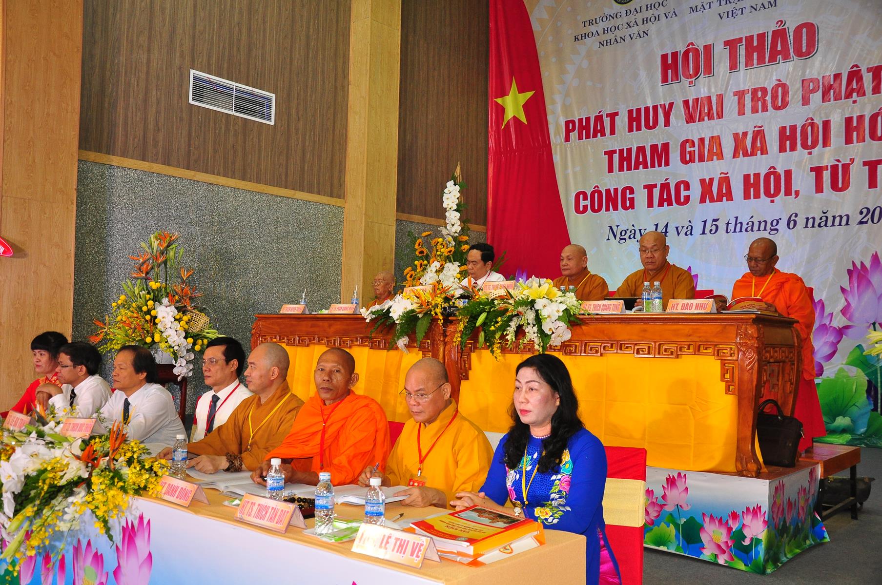 HT Thích Thiện Nhơn: Chủ tịch Hội đồng Trị sự GHPGVN; HT Thích Quảng Tùng: Phó Chủ tịch HĐTS, Trưởng Ban Từ thiện Xã hội TƯ; HT Thích; TT Thích Đức Thiện: Tổng Thư ký HĐTS GHPGVN; HT Thích Thiện Đức: UVTT HĐTS, Phó Trưởng ban Kiểm soát TƯ; HT Thích Tấn Đạt: UVTT HĐTS, Phó Trưởng ban TT Ban Hoằng pháp TƯ, Phó trưởng ban Từ thiện TƯ, Phó Văn phòng 2, Ủy viên ban tổ chức Hội thảo ; HT Danh Lung: UVTT HĐTS, Phó Văn phòng 2; HT Thích Minh Thiện: UV HĐTS, Phó trưởng ban Hoằng pháp TƯ, Phó Trưởng ban Từ Thiện Xã hội TƯ, Ủy viên Ban tổ chức Hội thảo, Trưởng ban Trị sự GHPGVN tỉnh Long An; HT Thích Huyền Thông: UV HĐTS, Phó Trưởng ban Thường trực BTS GHPGVN tỉnh Long An.