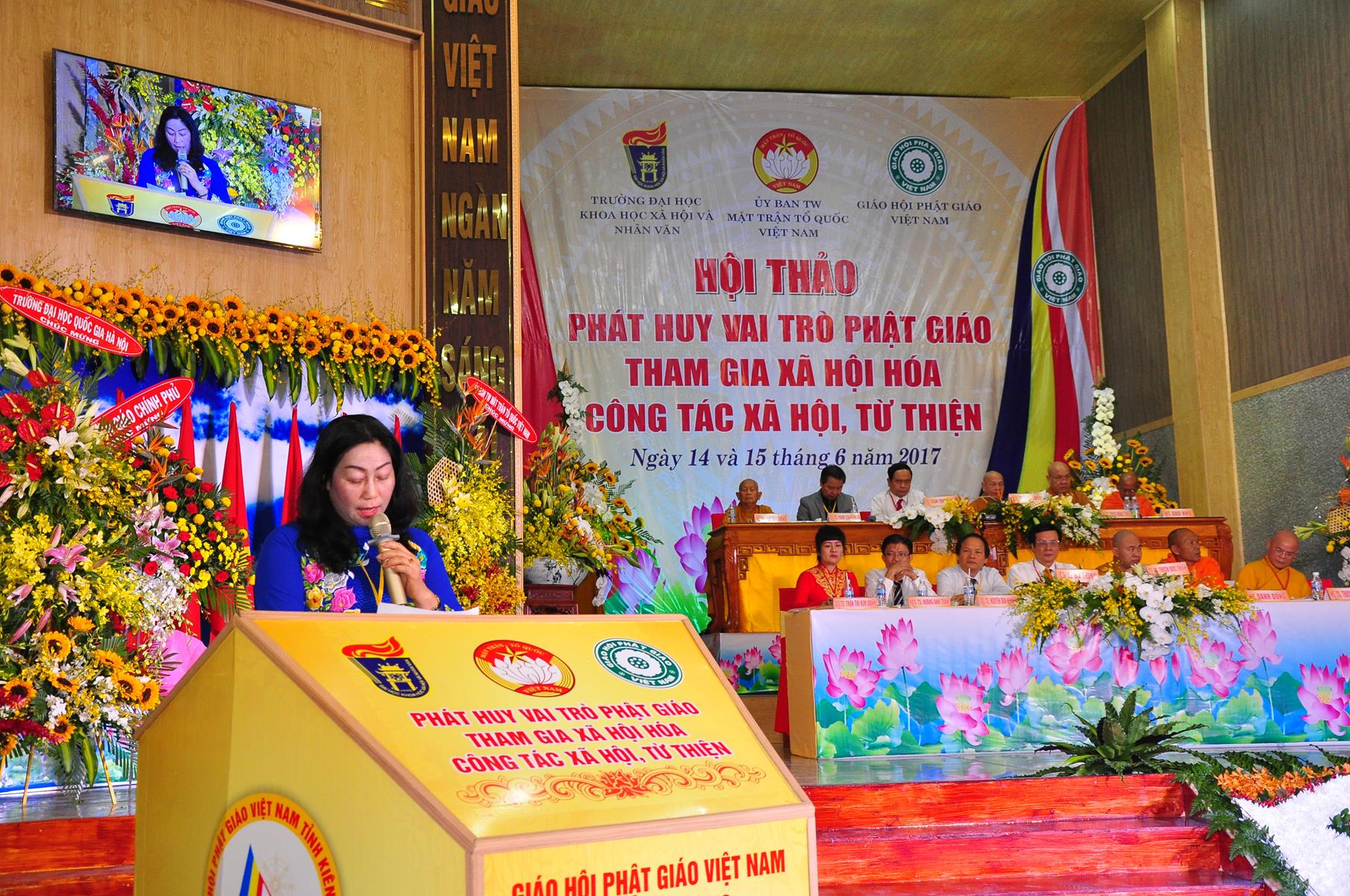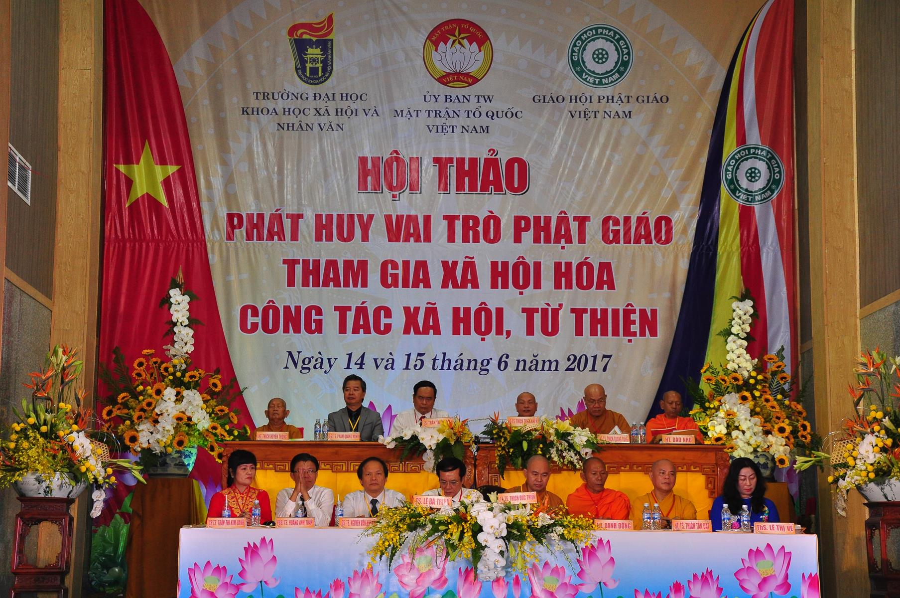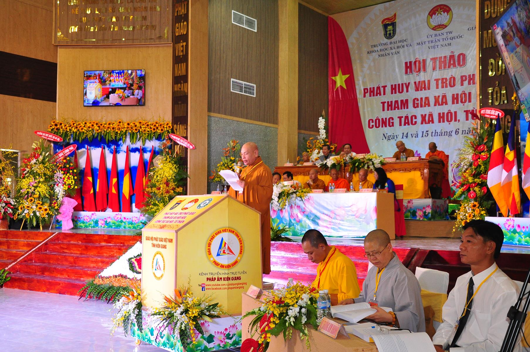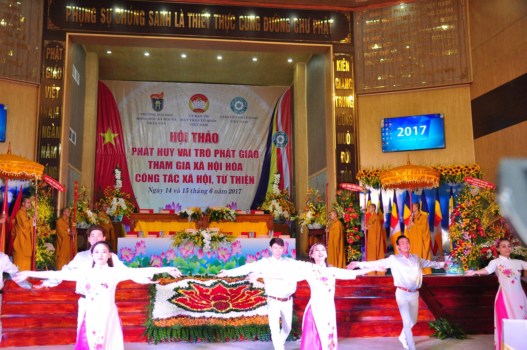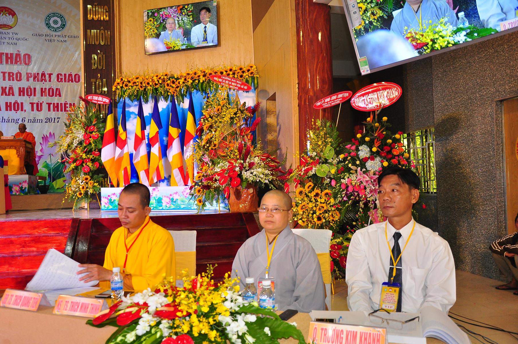 Sáng nay, vào lúc 08 giờ 00 ngày 14 tháng 6 năm 2017 (nhằm 20/5/Đinh Dậu) Giáo hội Phật giáo Việt Nam (Hội đồng Trị sự, Ban Từ thiện Xã hội TƯ, Phật giáo tỉnh Kiên Giang) kết hợp với Ủy ban Trung ương Mặt trận Tổ quốc Việt Nam và Trường Đại học Khoa học Xã hội & Nhân văn Hà Nội khai mạc hội thảo, chủ đề “Phát huy vai trò Phật giáo tham gia xã hội hóa công tác xã hội, từ thiện” tại hội trường Chùa Phật Quang, số 83 Quang Trung, P.Vĩnh Quang, TP. Rạch Giá, tỉnh Kiên Giang.