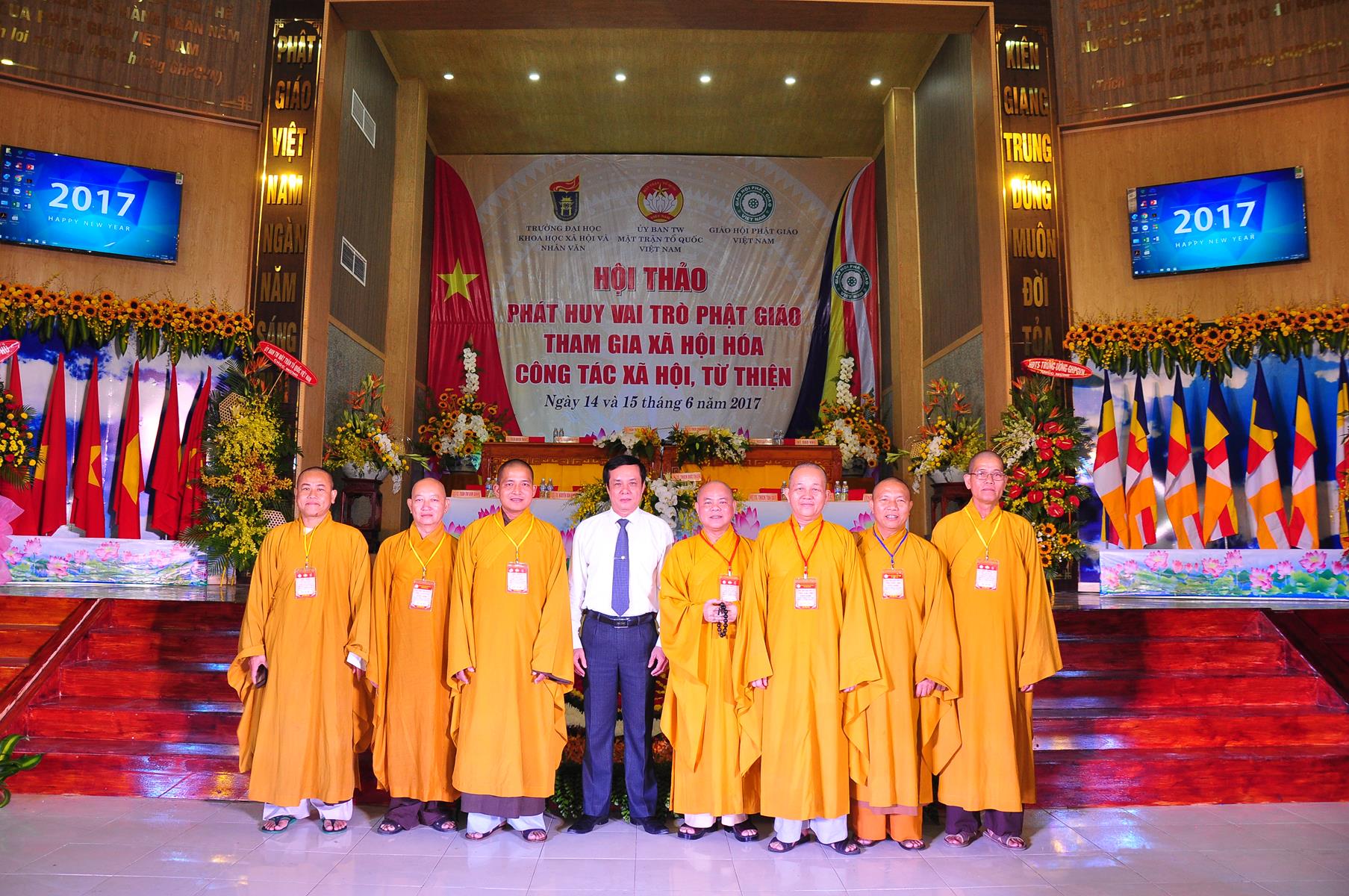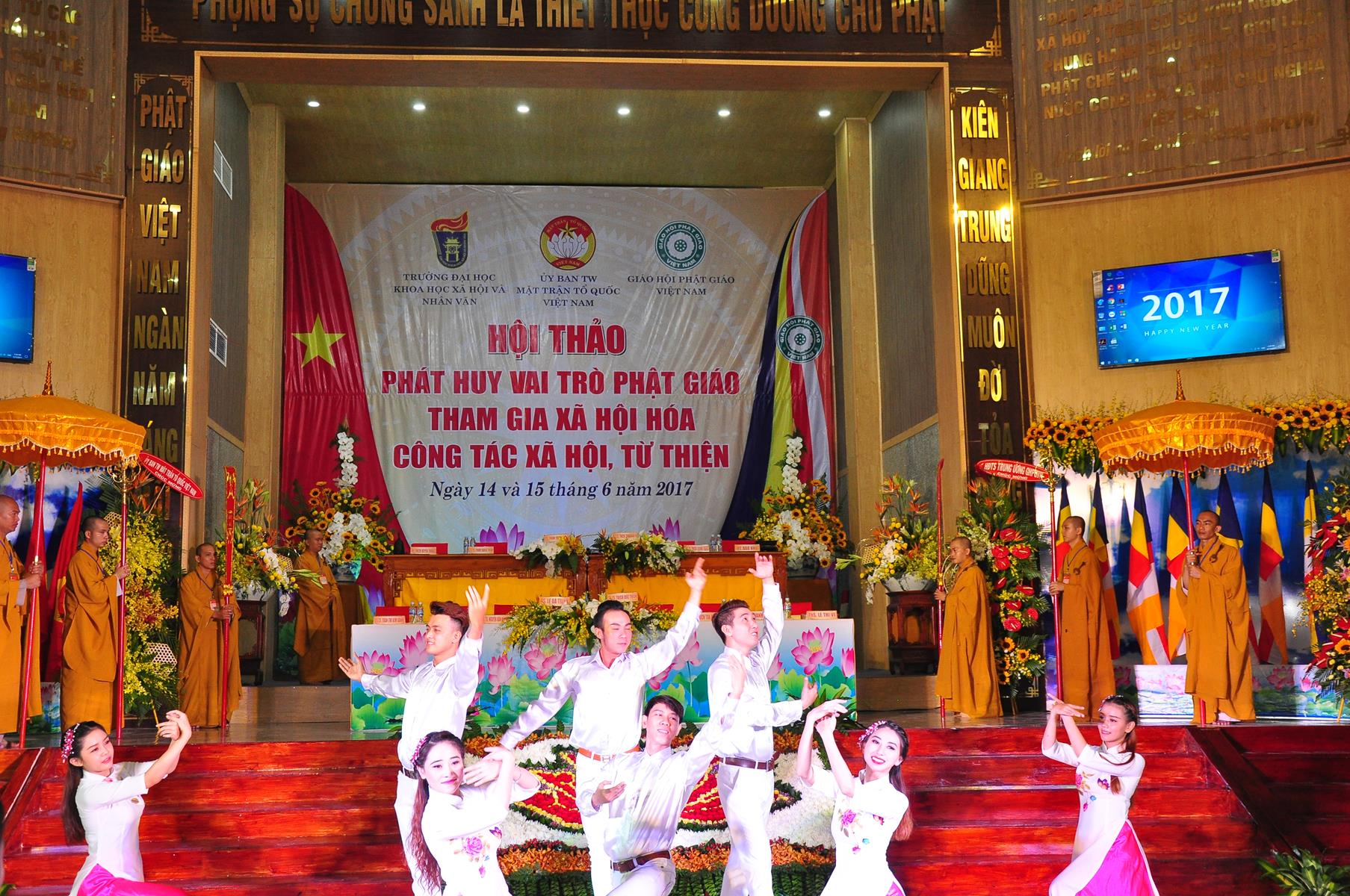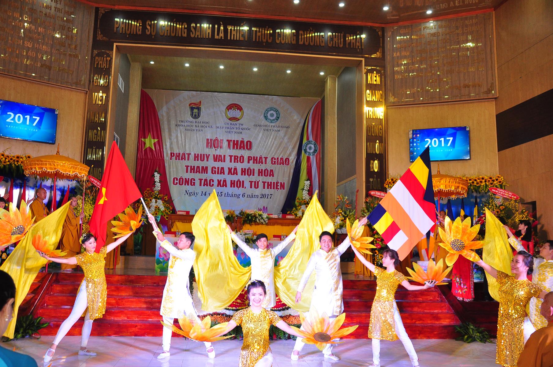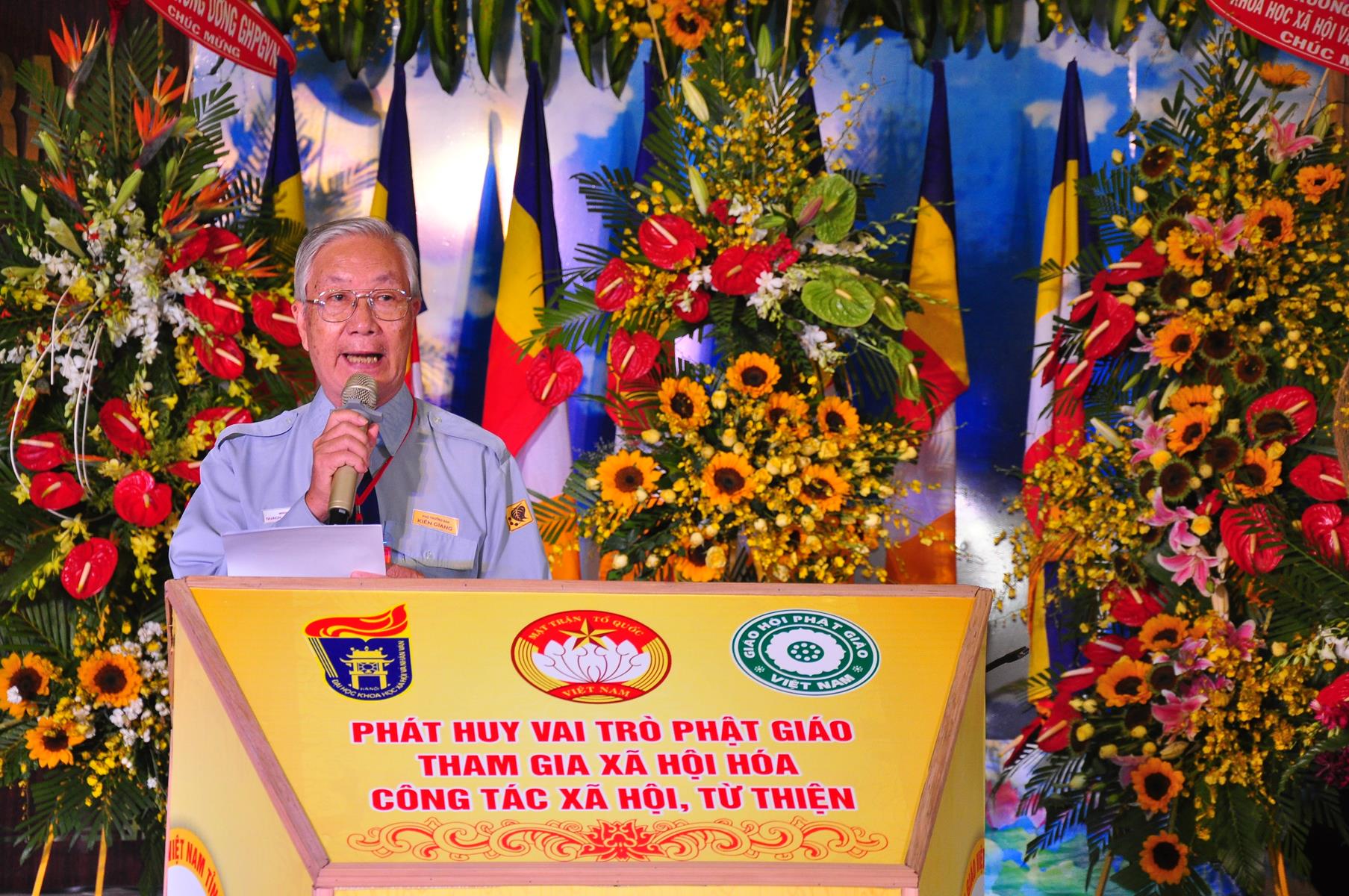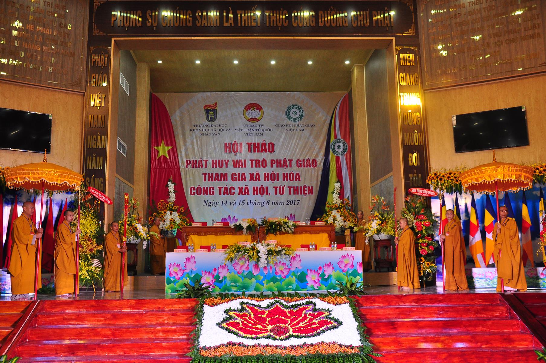 Sáng nay, vào lúc 08 giờ 00 ngày 14 tháng 6 năm 2017 (nhằm 20/5/Đinh Dậu) Giáo hội Phật giáo Việt Nam (Hội đồng Trị sự, Ban Từ thiện Xã hội TƯ, Phật giáo tỉnh Kiên Giang) kết hợp với Ủy ban Trung ương Mặt trận Tổ quốc Việt Nam và Trường Đại học Khoa học Xã hội & Nhân văn Hà Nội khai mạc hội thảo, chủ đề “Phát huy vai trò Phật giáo tham gia xã hội hóa công tác xã hội, từ thiện” tại hội trường Chùa Phật Quang, số 83 Quang Trung, P.Vĩnh Quang, TP. Rạch Giá, tỉnh Kiên Giang.