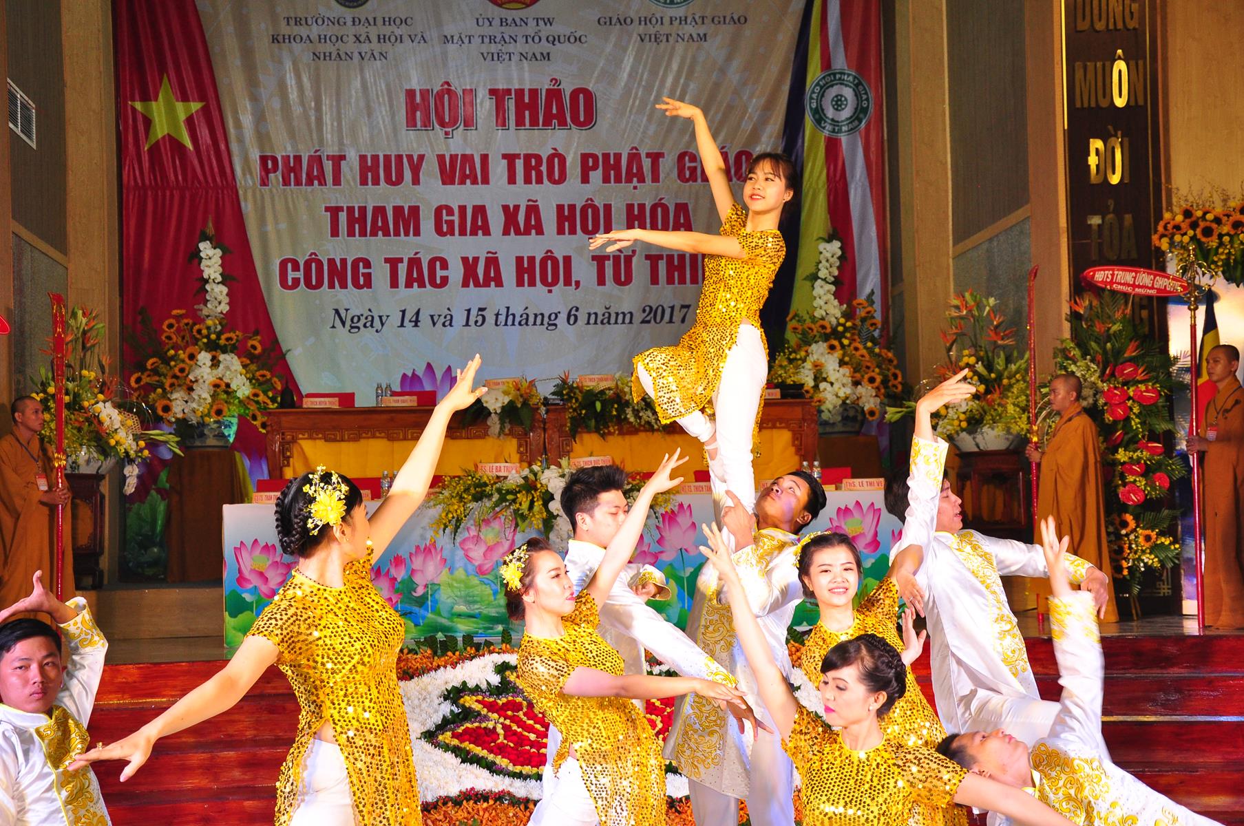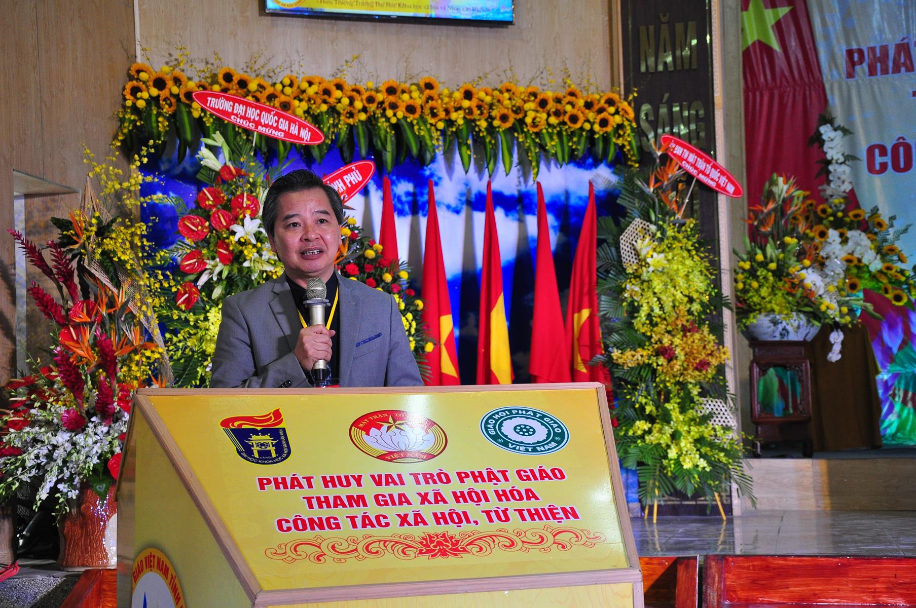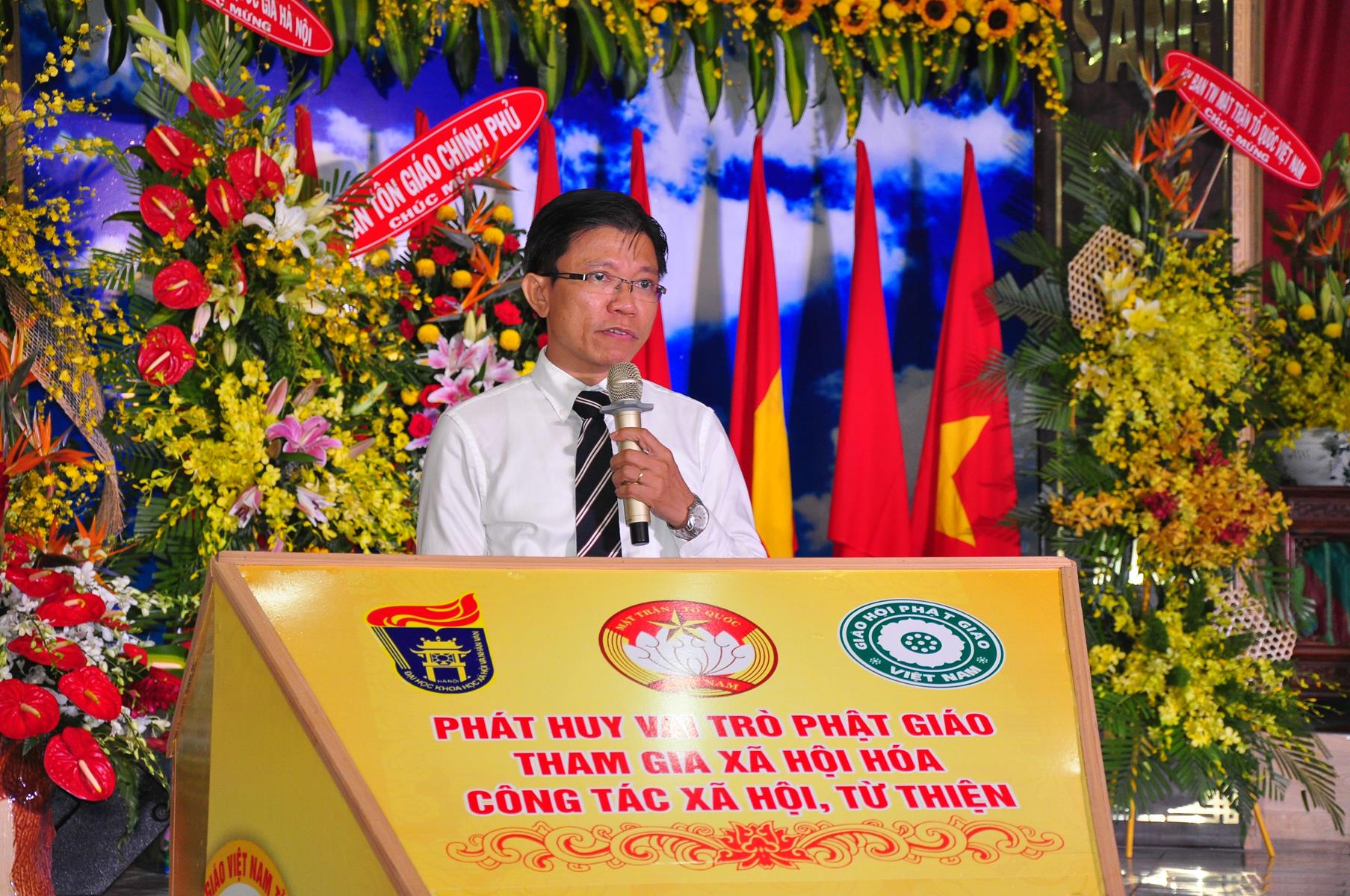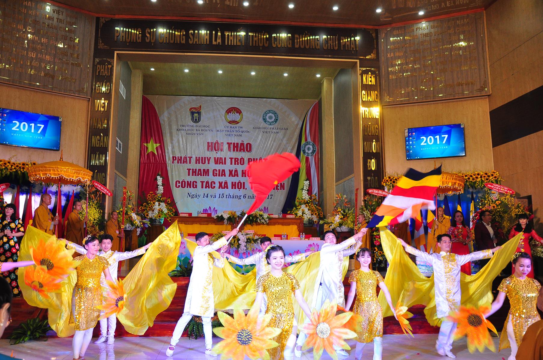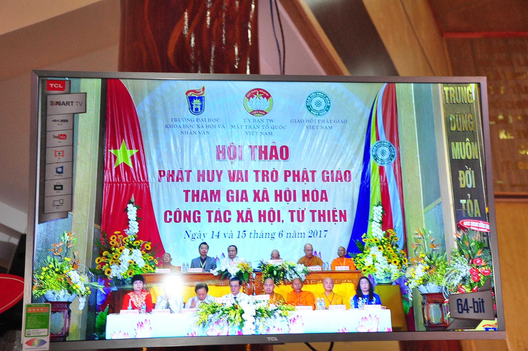 Sau chương trình văn nghệ chào mừng hội thảo, nghi thức chào quốc kỳ, đạo kỳ, giới thiệu chương trình và thành phần tham dự, ông TS Trần Thanh Mẫn: Ủy viên Ban Chấp hành TƯ Đảng, Phó Chủ tịch kiêm Tổng Thư ký Ủy ban Trung ương Mặt trận Tổ quốc Việt Nam phát biểu khai mạc. Trên căn bản của những giá trị giáo lý “Lục độ” (Bố thí, Trì giới, Nhẫn nhục, Tinh tấn, Thiền định, Trí huệ) và “Tứ vô lượng tâm” (Từ, bi, hỷ, xả), cùng với truyền thống “Hộ quốc an dân”, đồng hành cùng dân tộc, trong những năm qua, Phật giáo Việt Nam luôn phát huy truyền thống yêu nước, đoàn kết, gắn bó đồng hành cùng dân tộc, sẻ chia trách nhiệm với xã hội và đất nước, tích cực hưởng ứng và tham gia các hoạt động an sinh xã hội, các phong trào thi đua yêu nước, các cuộc vận động do Mặt trận Tổ quốc Việt Nam và các ban, ngành, đoàn thể phát động; góp phần thực hiện tốt chủ trương xã hội hóa các lĩnh vực y tế cơ sở, giáo dục mầm non, hoạt động trợ giúp xã hội, dạy nghề,… của Đảng, Nhà nước.