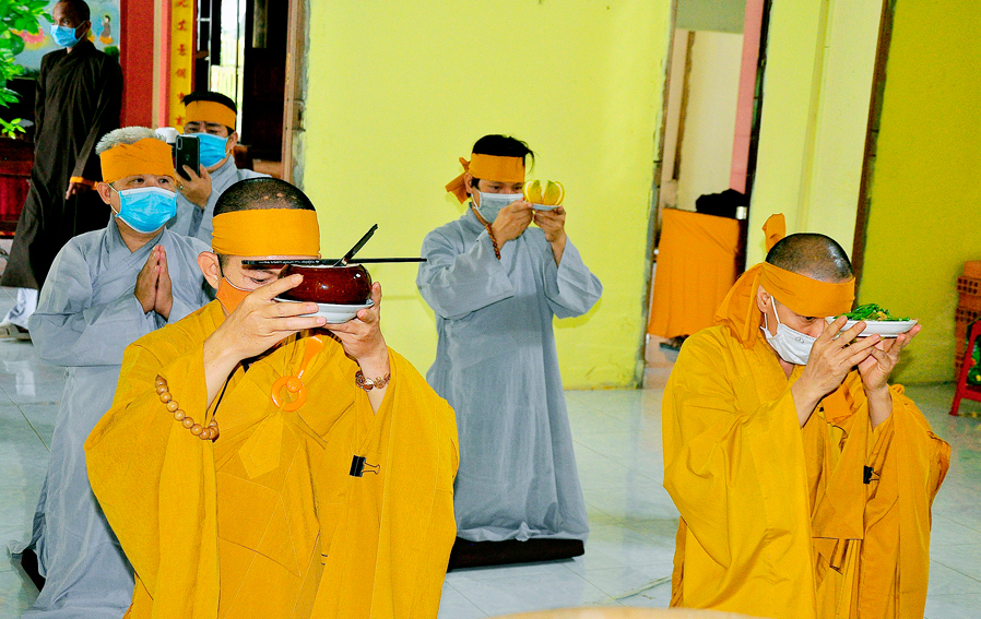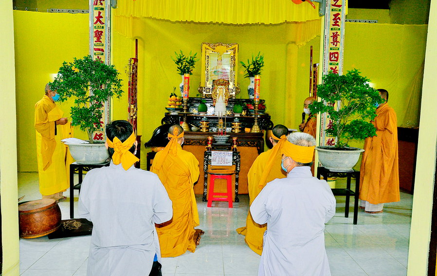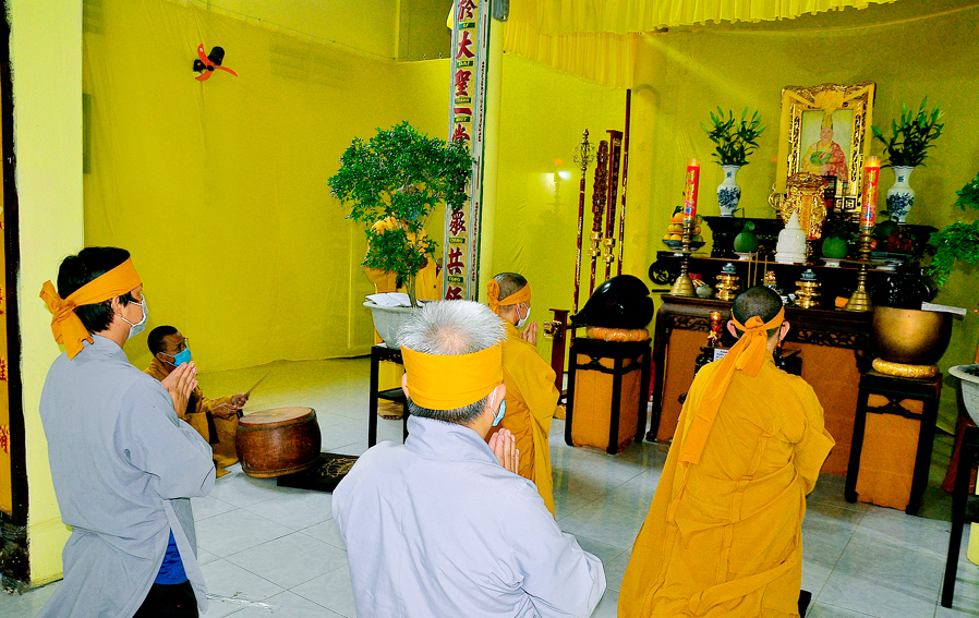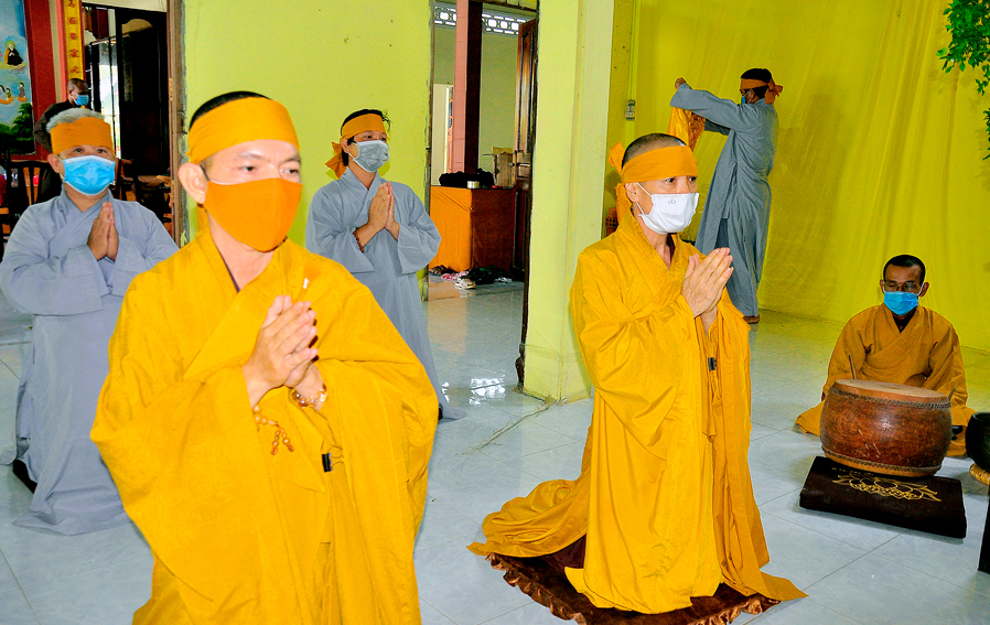 Trước tình hình dịch bệnh diễn biến phức tạp tỉnh Long An đang giãn cách xã hội theo Chỉ thị 16 của Thủ Tướng Chính phủ nên Ban Tổ chức Tang chỉ thực hiện nghi thức giản đơn nhưng không kém phần trang nghiêm nghi thức truyền thống Phật giáo.