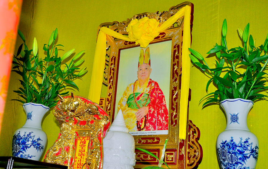 Phục vì Tân viên tịch, Thiên Long Đường thượng, Từ tế Thượng Chánh tông, Tứ tập tứ thế, Huý Nguyên Đạo Thượng THIỆN hạ TÂM, Đinh Công Hoà thượng Giác linh. Nguyện Giác linh Hoà thượng cao đăng Phật quốc.