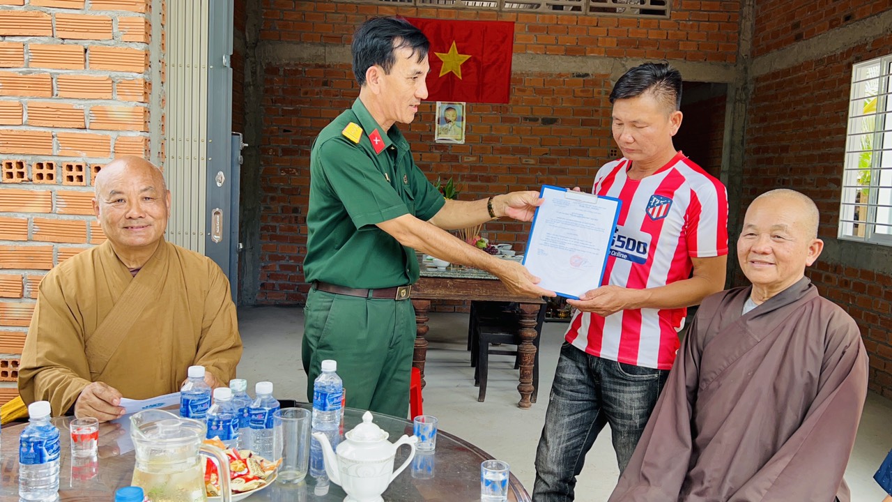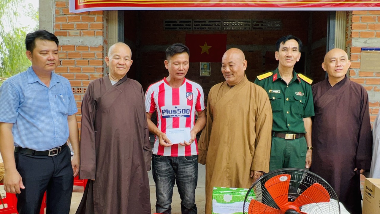 Cảm niệm công đức Hoà Thượng Thích Minh Thiện, Ni sư Như Liên và các cấp chính quyền địa phương, BCH quân sự Thị xã đã đồng tâm hiệp lực để chúng ta cùng xây dựng căn nhà quân dân cho anh Lê Văn Long có mái ấm để an ổn và phát triển chuyện làm ăn sau này.