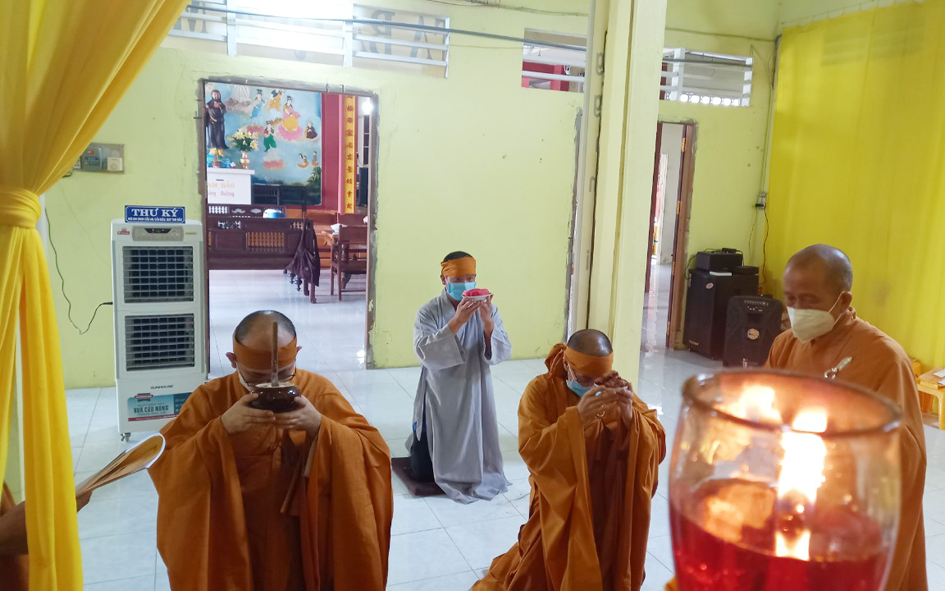 Trước giác Linh đài Đại đức Thích Huệ Quang thay mặt Tăng Ni Phật tử huyện dâng lời tri ân, nhắc lại công đức , những lời dạy của Ngài và phát nguyện tiếp tục công việc Phật sự hoà thượng đã truyền trao. Sau lời tưởng niệm, Chư tôn đức dâng hương, tụng thời kinh, cung tiến Giác linh. Buổi lễ tuy đơn giản do giãn cách xã hội nhưng thể hiện đầy đủ lòng tri ân sâu sắc của Tăng Ni và Phật tử đến Giác Linh Hòa Thượng.